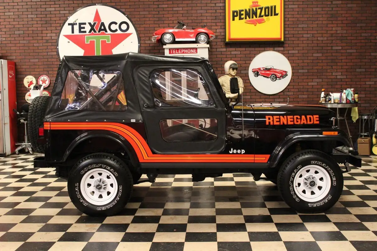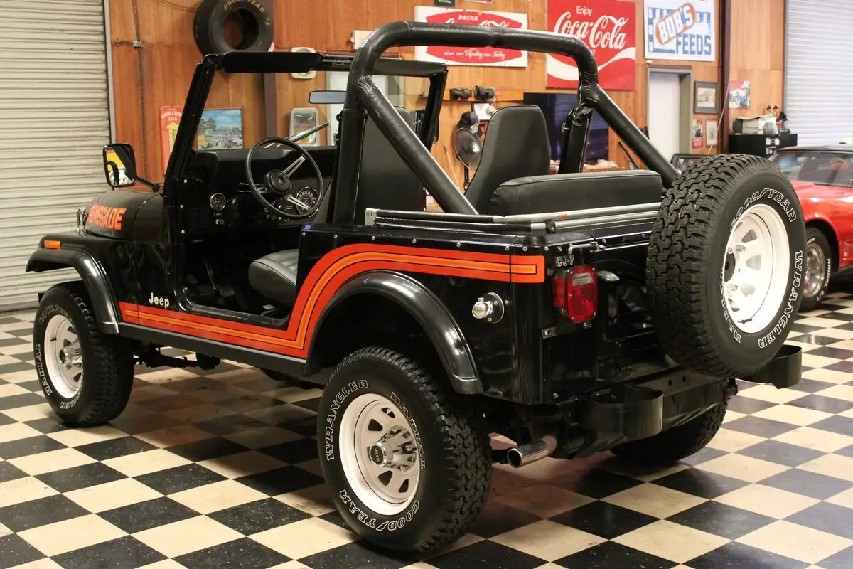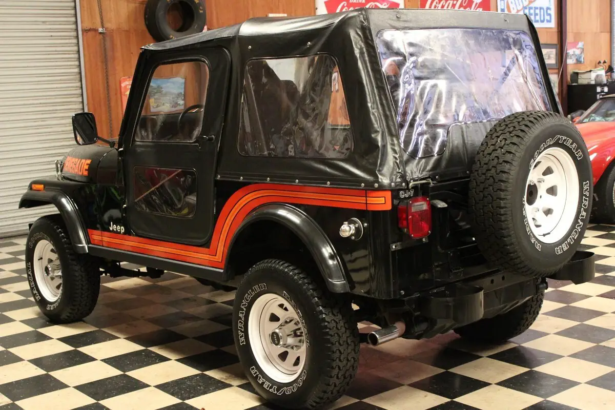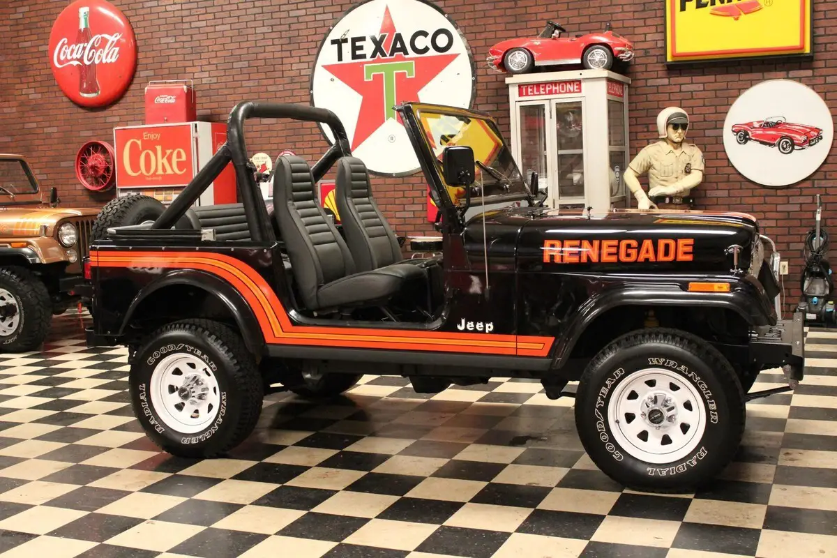 Up for sale is a 1985 Jeep CJ7 Renegade with only 14k original Miles. Dressed in its original Black paint and Black interior. This Jeep is in stunning original condition and spent its life in southern California and was kept in a climate controlled showroom. This Jeep is in collector quality condition and would cost much more to restore a Jeep to this condition. This Jeep is nicely optioned with 4.2L 6cyl, 5 speed transmission, power steering and power brakes. Runs and drives like a new one. The original paint and interior are in excellent condition with little signs of wear or blemishes. Nice original Whitco softop. New tires. Pictures do not do this Jeep justice, this Jeep shows like a restored Jeep. Stunning original low Mileage SoCal Jeeps are the most sought after in the Jeep community. Ready to go. Cheaper than a time machine. For a better look at this beautiful Jeep please see the video below. For many more photos please see the information in the last photo of this listing. *WE DO OFFER FINANCING* For more information please call or text Colin King at 334-618-7530.*THIS VEHICLE IS FOR SALE LOCALLY THEREFORE THIS AUCTION MAY END AT ANYTIME*