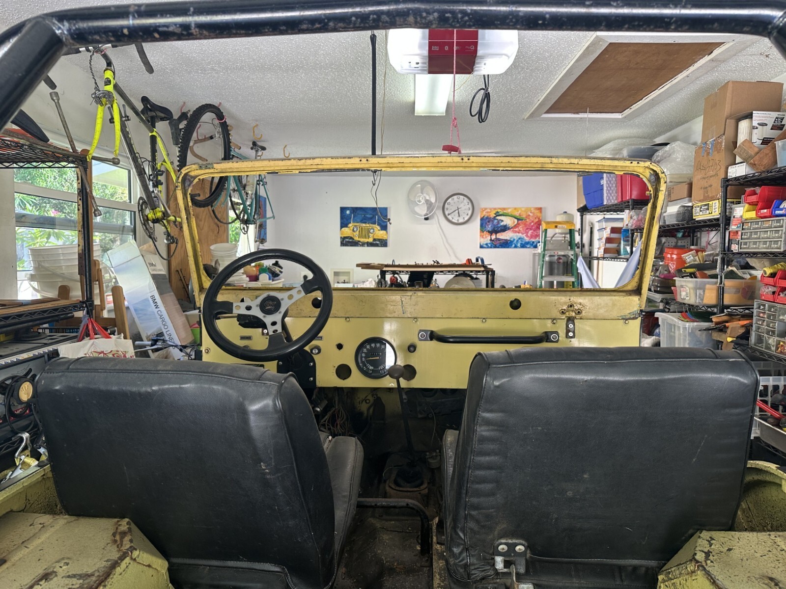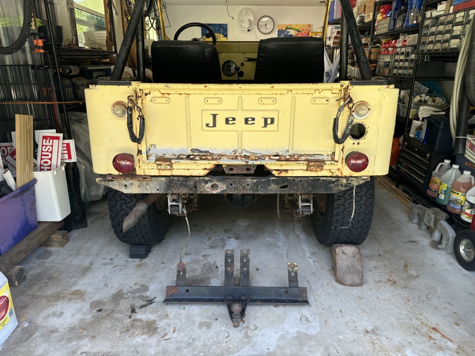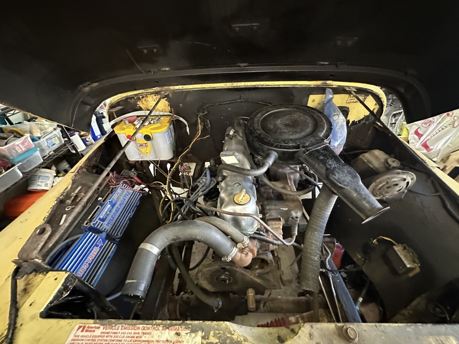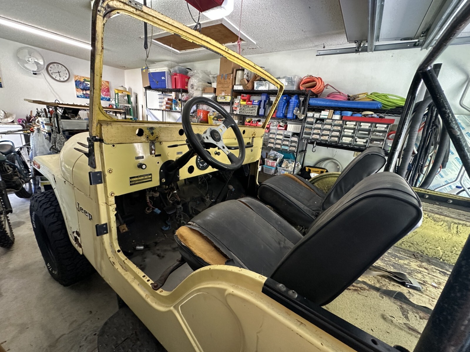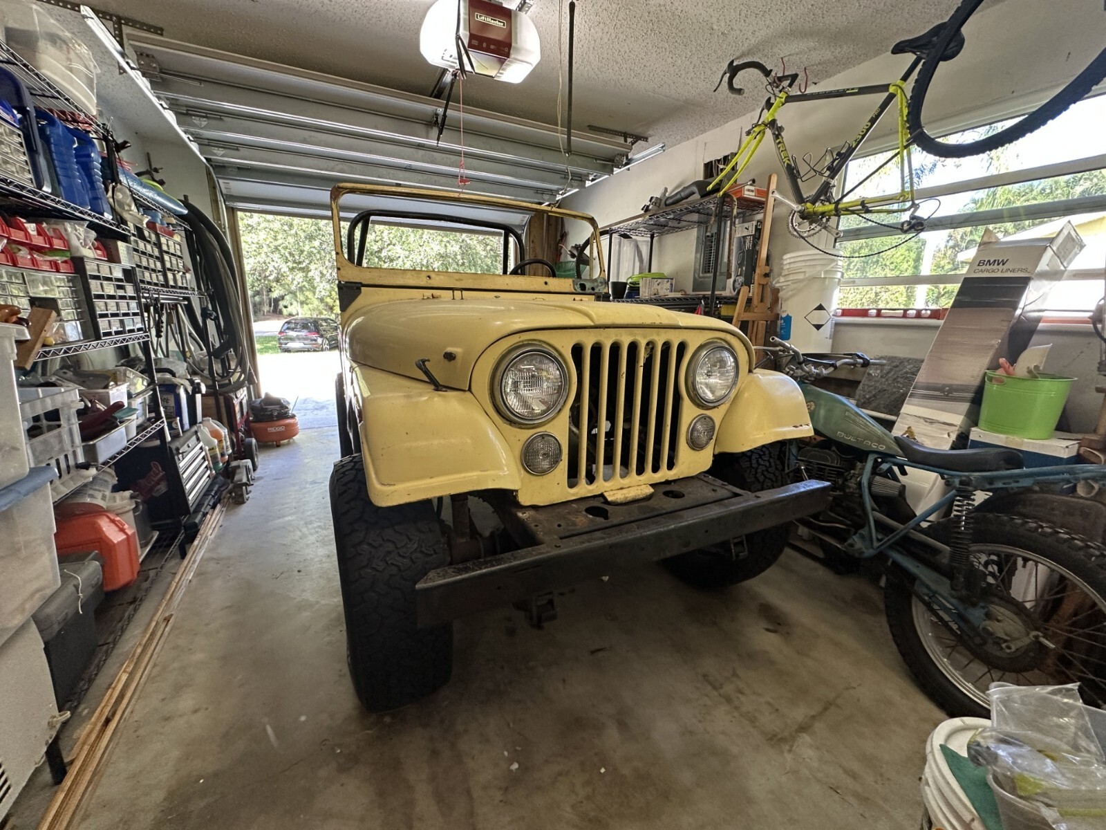 1973 CJ-5 with 258 engine (1979)and 3 speed T-14 gearbox. Dana 44 rear axle and Dana 30 front axle with disc brake upgrade. 2.5” Ranco lift. Jacobs Ultracoil & Mileage Master with Pertronix pickup.