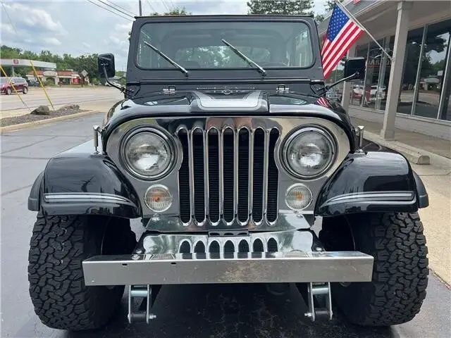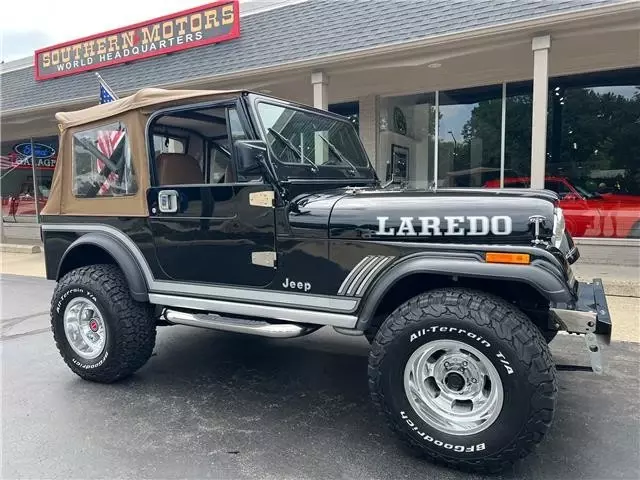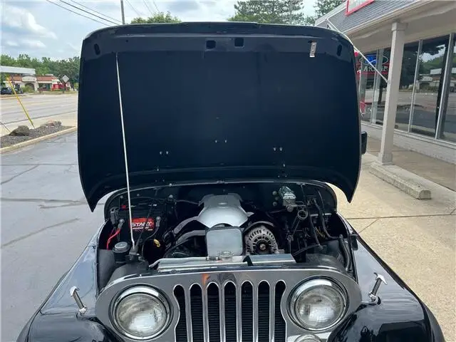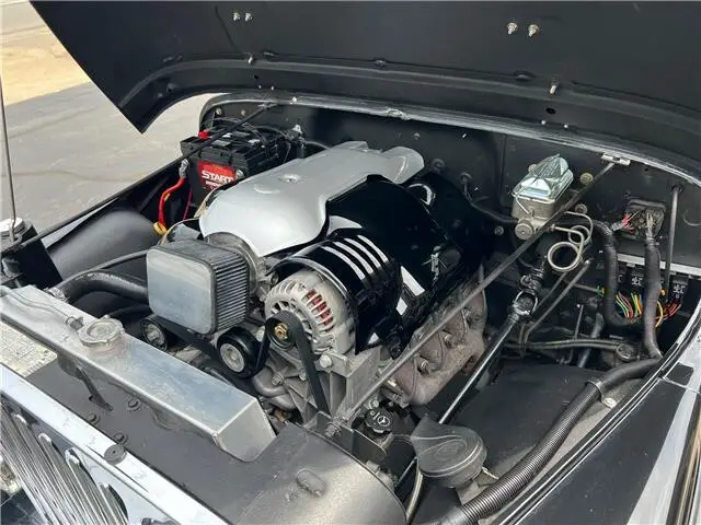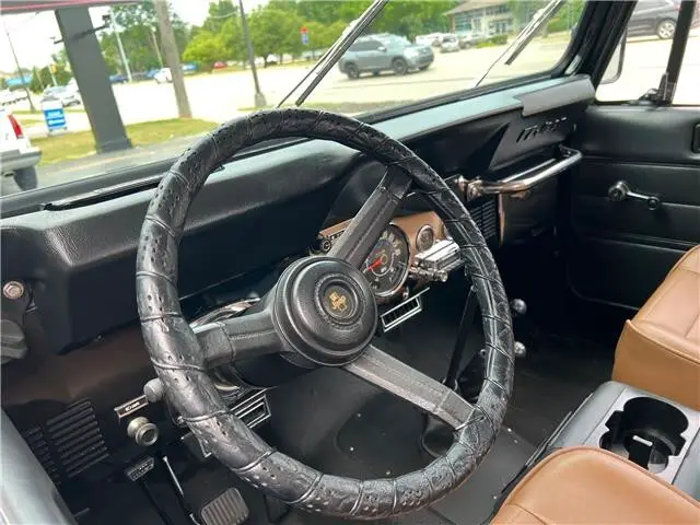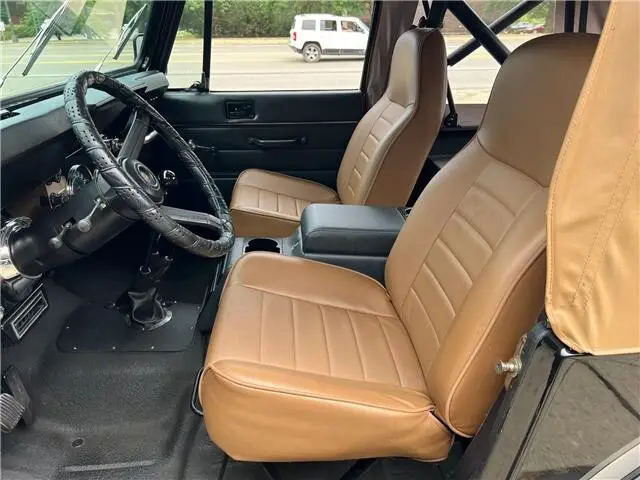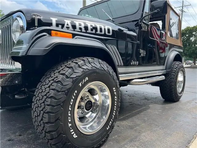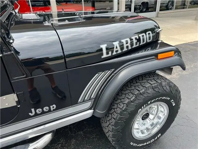 4700 miles on Complete Frame-Off Restoration, steel body, 4X4, beautiful Tuxedo black paint, two tone Laredo striping, new Bestop saddle interior, 5.3 LS EFI engine, 5 speed manual transmission, twin-stick transfer case, power steering, disc brakes, Vintage air conditioning, custom engine cover, factory exhaust manifolds, aluminum radiator, bucket seats with center console, factory dash, custom sound system, tilt column, Flowmaster exhaust, 3” lift, new 32X11.50R15LT BF Goodrich All Terraine T/A tires, new 15X10 billet wheels, chrome grill, Smittybilt nerf bars, Show Quality!