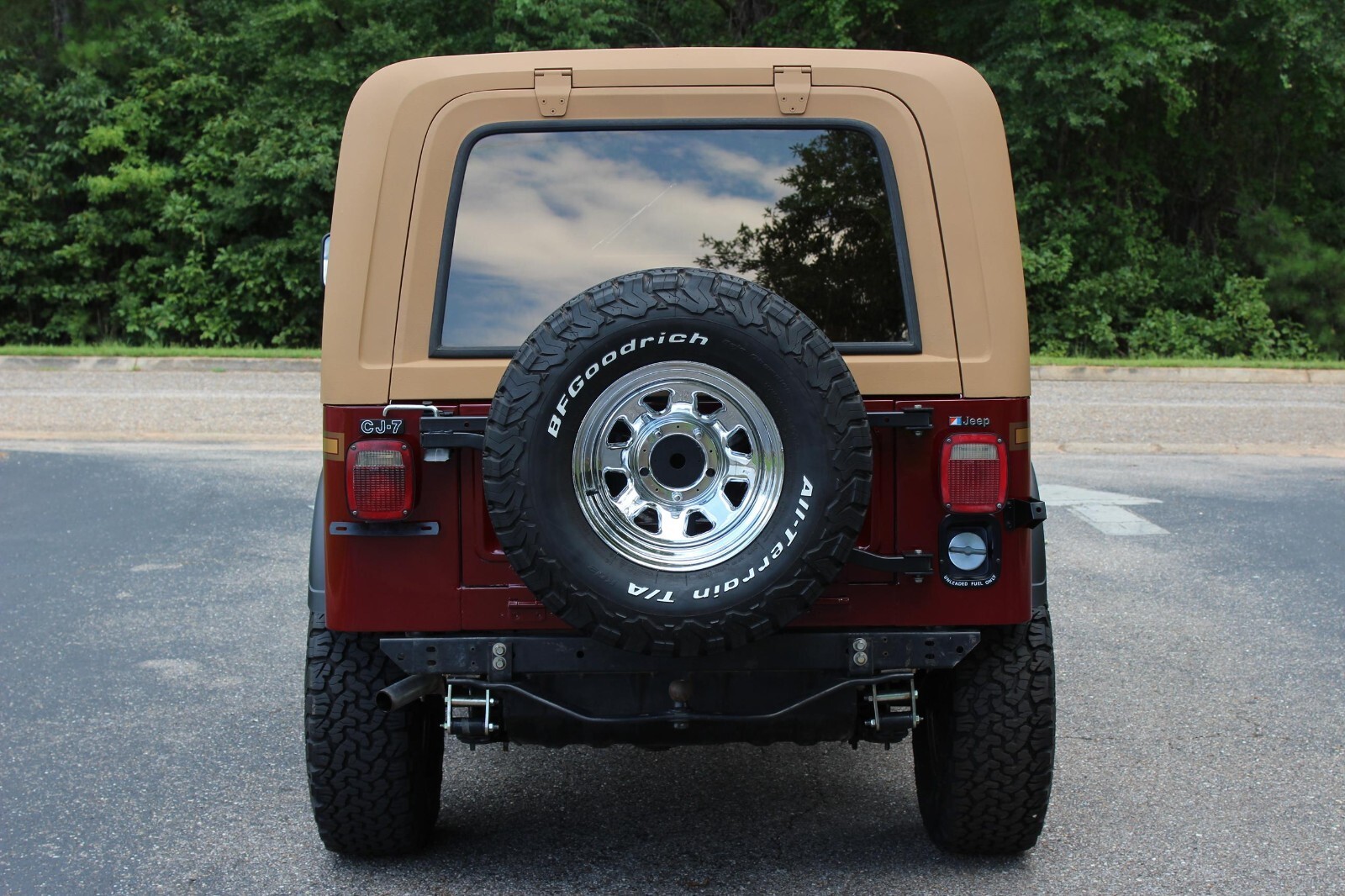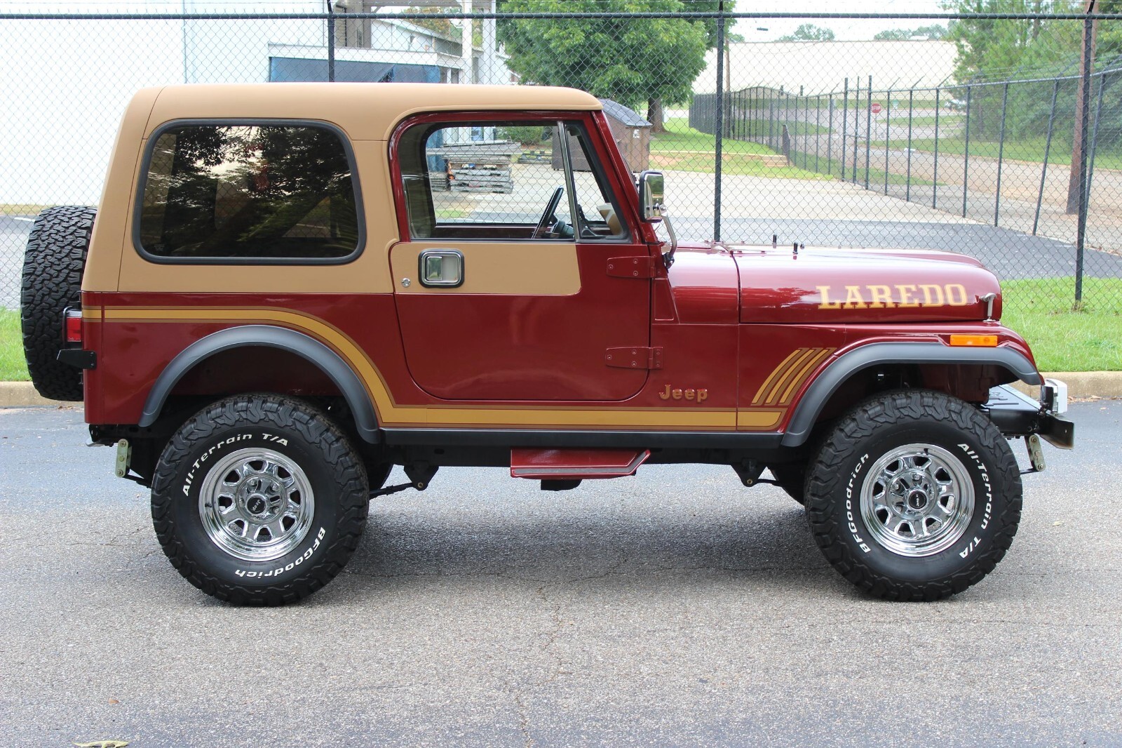Up for sale is a 1986 Jeep CJ7 Laredo. This last year CJ7 is dressed in incredibly rare Garnet paint and Honey interior with Honey hardtop. This color combination is so rare that we have never seen one in the wild, to say it is a beautiful color combo is an understatement. This Jeep was sold new in a California and spent its life there until 2018 when it went to Georgia. Spending its life in California has helped keep this Jeep rust free and rot free. This Jeep is very well optioned with Laredo package, 6 cyl. engine, auto transmission, late 86 with Dana 44, Marchal Fog lights power steering, power brakes, tilt wheel, hardtop and doors, Factory AC although some of the components are missing. This is a heavily optioned CJ7 in a super rare color combo that was treated to a full cosmetic resto. This Jeep has new paint, new carpet, new tires, new trim. Mechanical services include oil pan gasket, valve cover gasket, new leaf springs and new tires. This Jeep being the last and most sought after year with these options, late production Dana 44, California Jeep, and rare color combo could make this a 1 of 1 Jeep. You may not find another one like this. For a better look at this Jeep please view the video below. For many more photos please see the information in the last photo of this ad. *WE DO OFFER FINANCING* For more information please call or text Colin King at 334-618-7530.