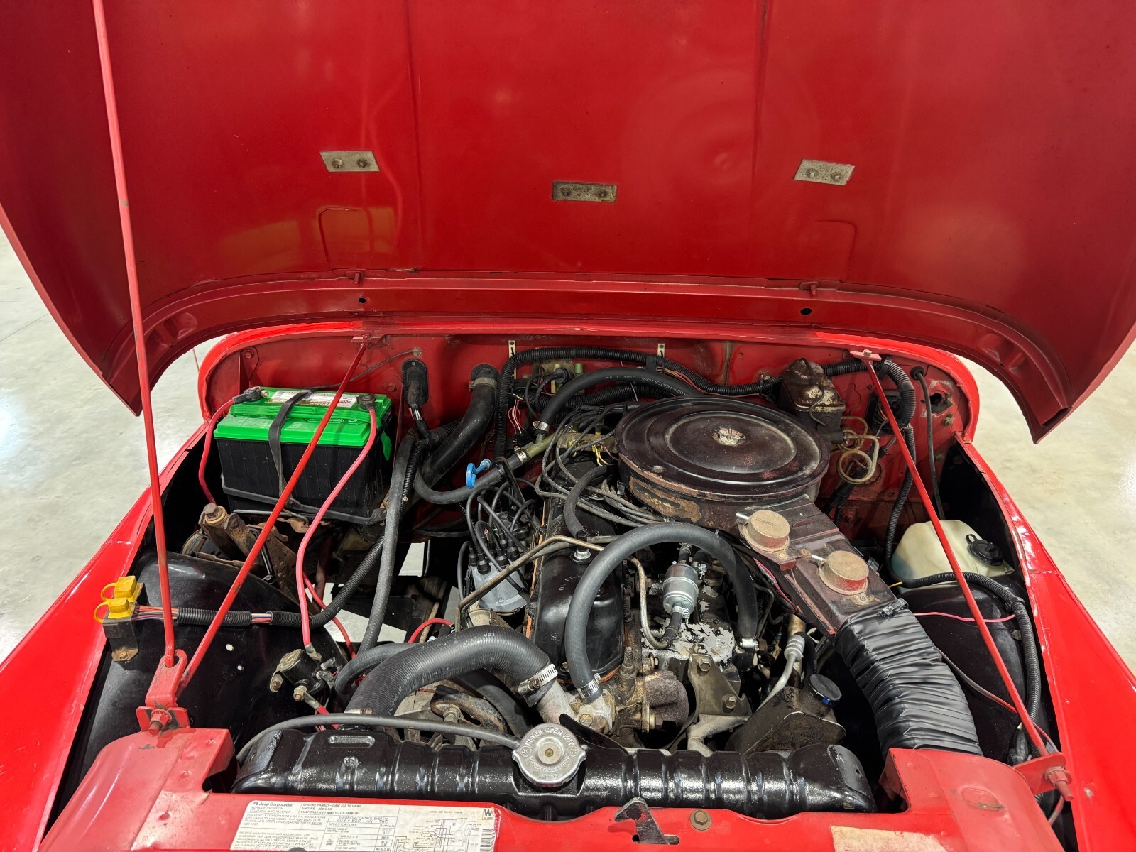 53,462 original miles, Original 4.2L V6 Engine with 4 speed manual transmission, Second owner owned since 1989. New Seats, Center Console, Bikini Top, Rims, Wood side rails, Classic Car Stereo with Bluetooth, audio speakers, new fuel, steering and radiator hoses. New power steering gear box, radiator refurbished, fuel filter, fuel pump, distributor cap, new spark plugs and wires, new rear shocks. Fresh oil and filter along with new left sway bar and all lights work as intended.