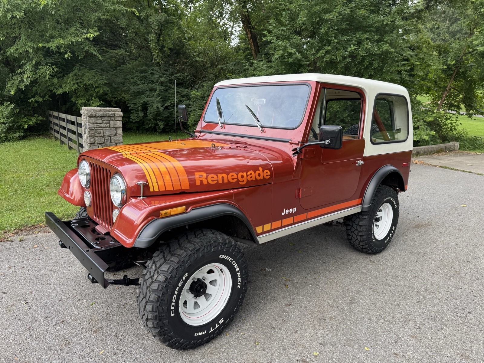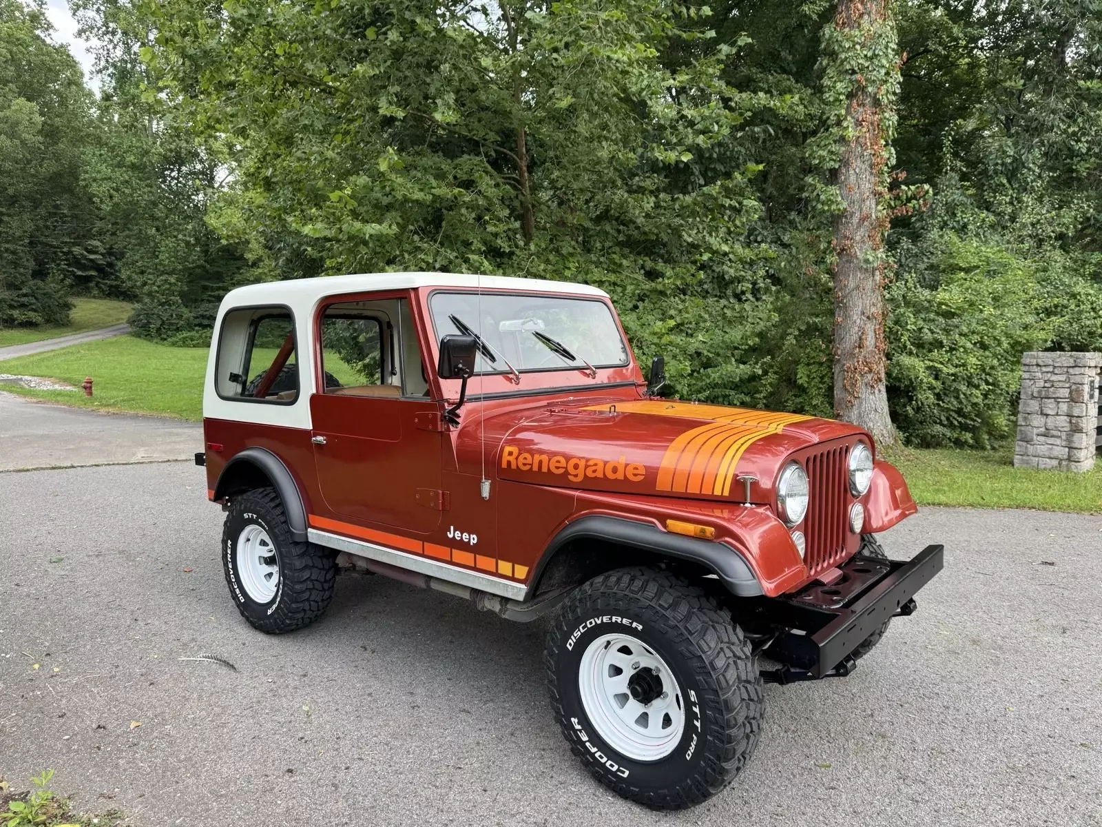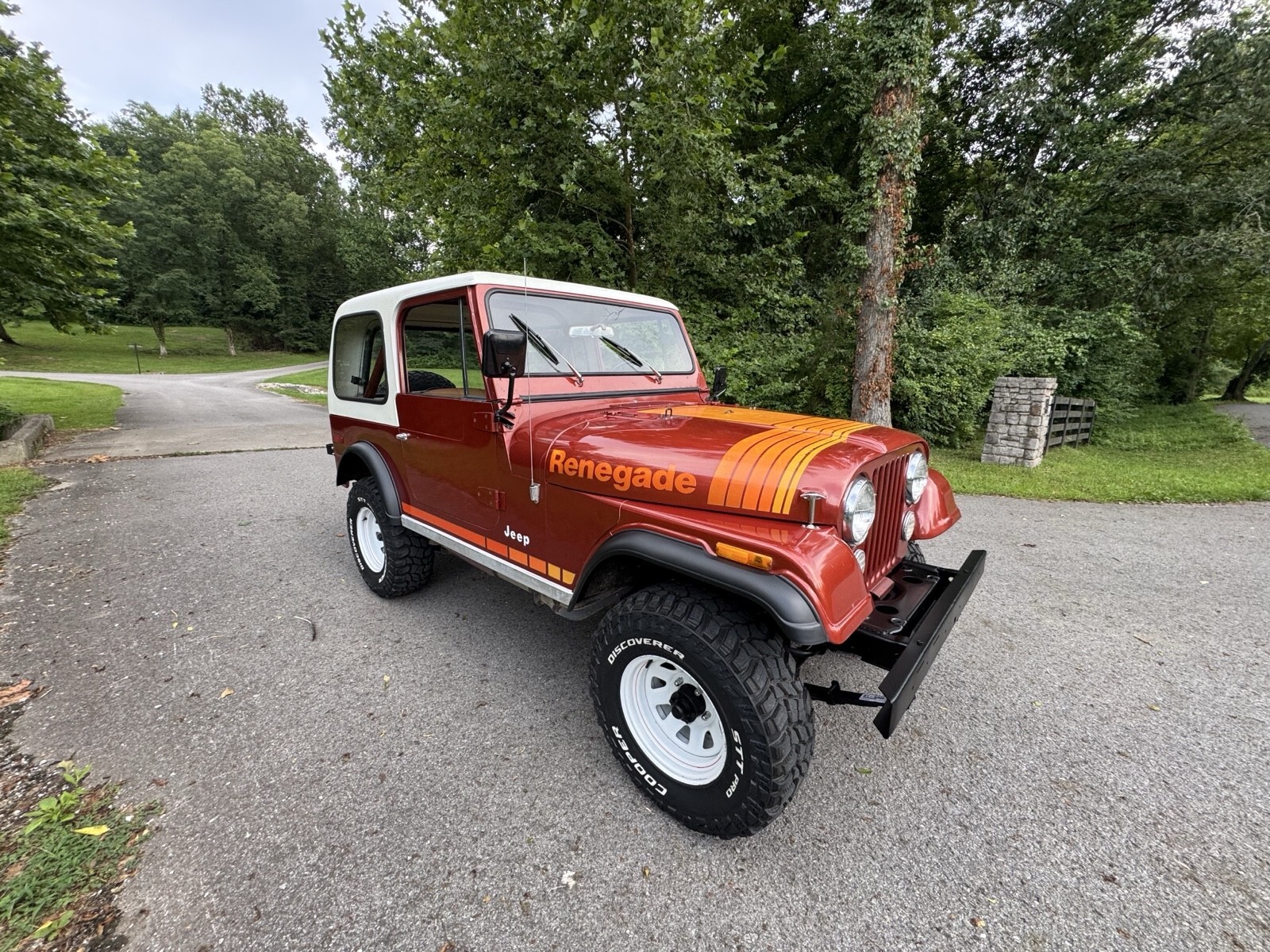 Late 79’ model Jeep CJ7 Renegade highly optioned with AMC 304 V8 automatic, hardtop and hard doors. Mostly original paint gives it a very nostalgic look. This is the year and package everyone wants. New tires, fresh painted top, body paint corrected and blended where needed to preserve original look. New holly 2300 runs excellent, shift right. Side pipe exhaust. Expertly restored seats and buttons on excellent original frames. The hard work is already done it’s ready to enjoy now.