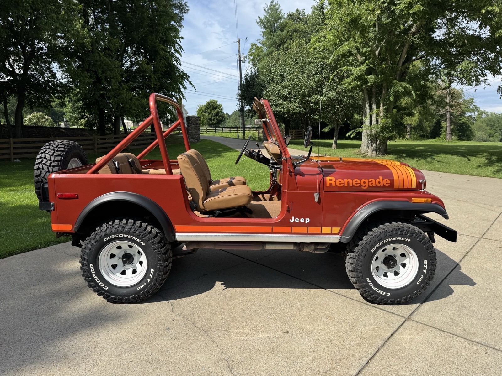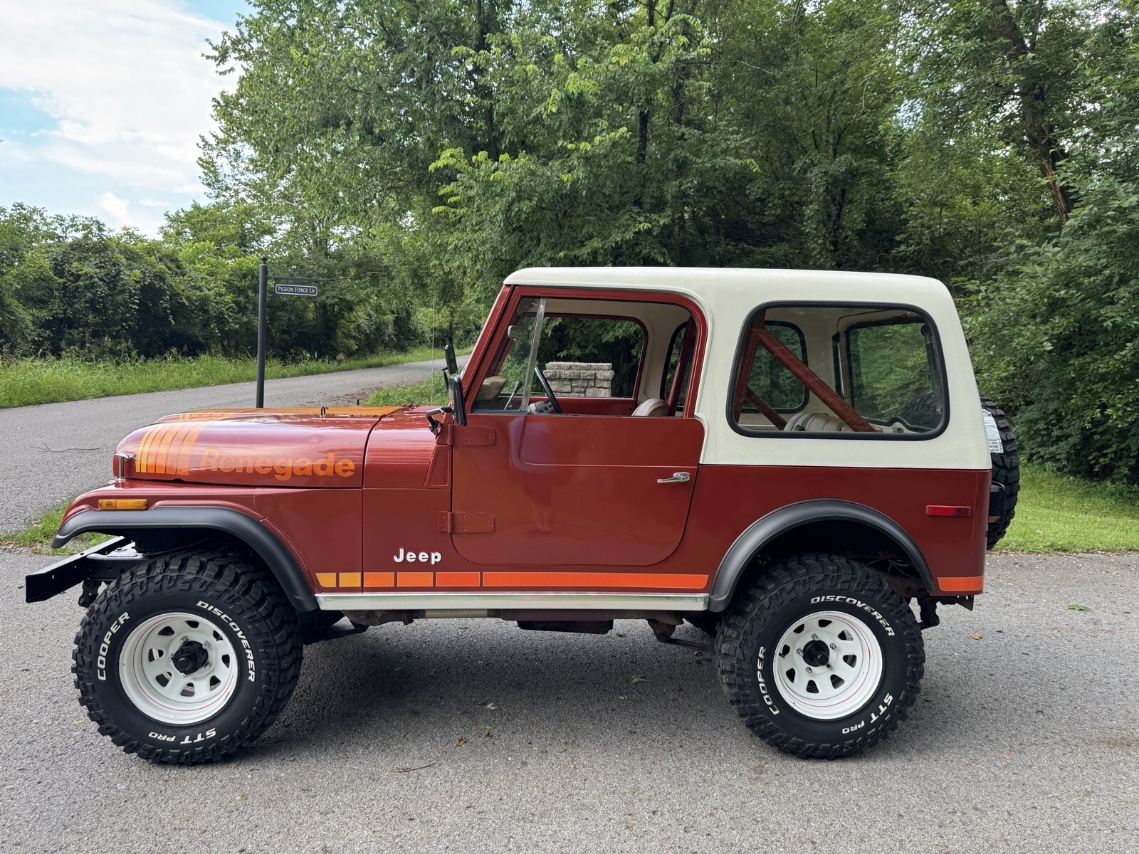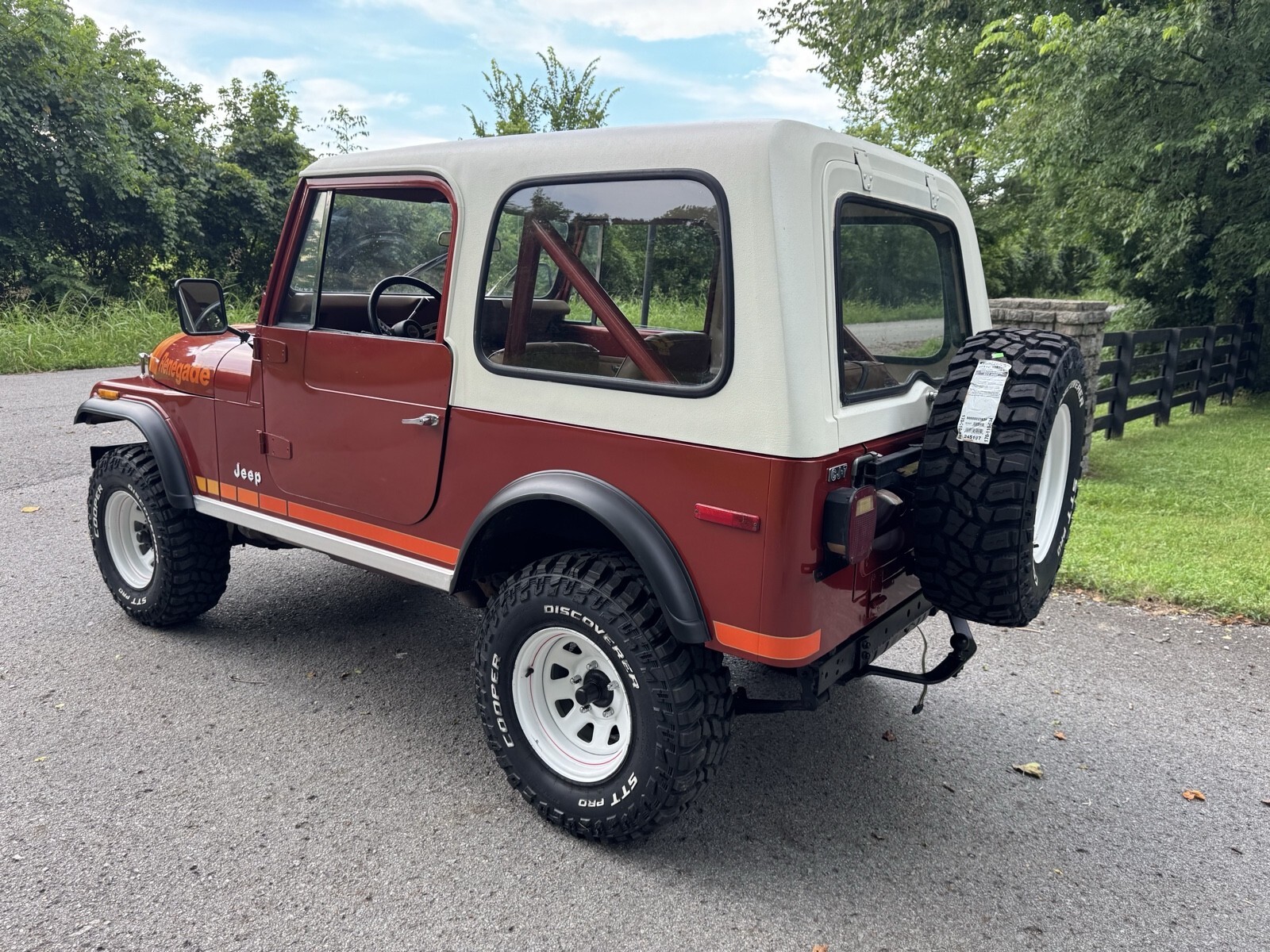 Late 79’ model Jeep CJ7 Renegade highly optioned with AMC 304 V8 automatic, hardtop and hard doors. Mostly original paint gives it a very nostalgic look. This is the year and package everyone wants. New tires, fresh painted top, body paint corrected and blended where needed to preserve original look. New holly 2300 runs excellent, shift right. Side pipe exhaust. Expertly restored seats and buttons on excellent original frames. The hard work is already done it’s ready to enjoy now.