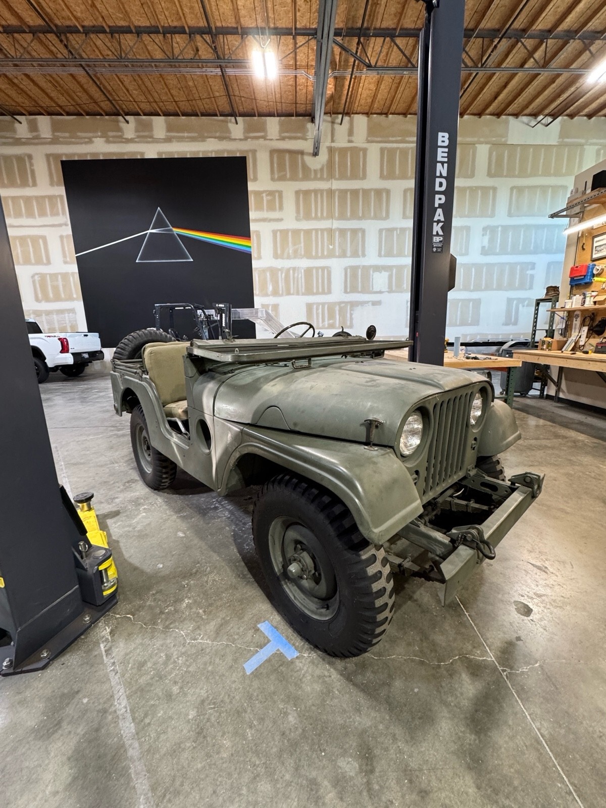 1953 M38 A1 Military Jeep. Rock solid, no rust, 24v system. Does not currently run but did drive, shift, and brake well when it did. I suspect fuel delivery issue from carb to motor.
