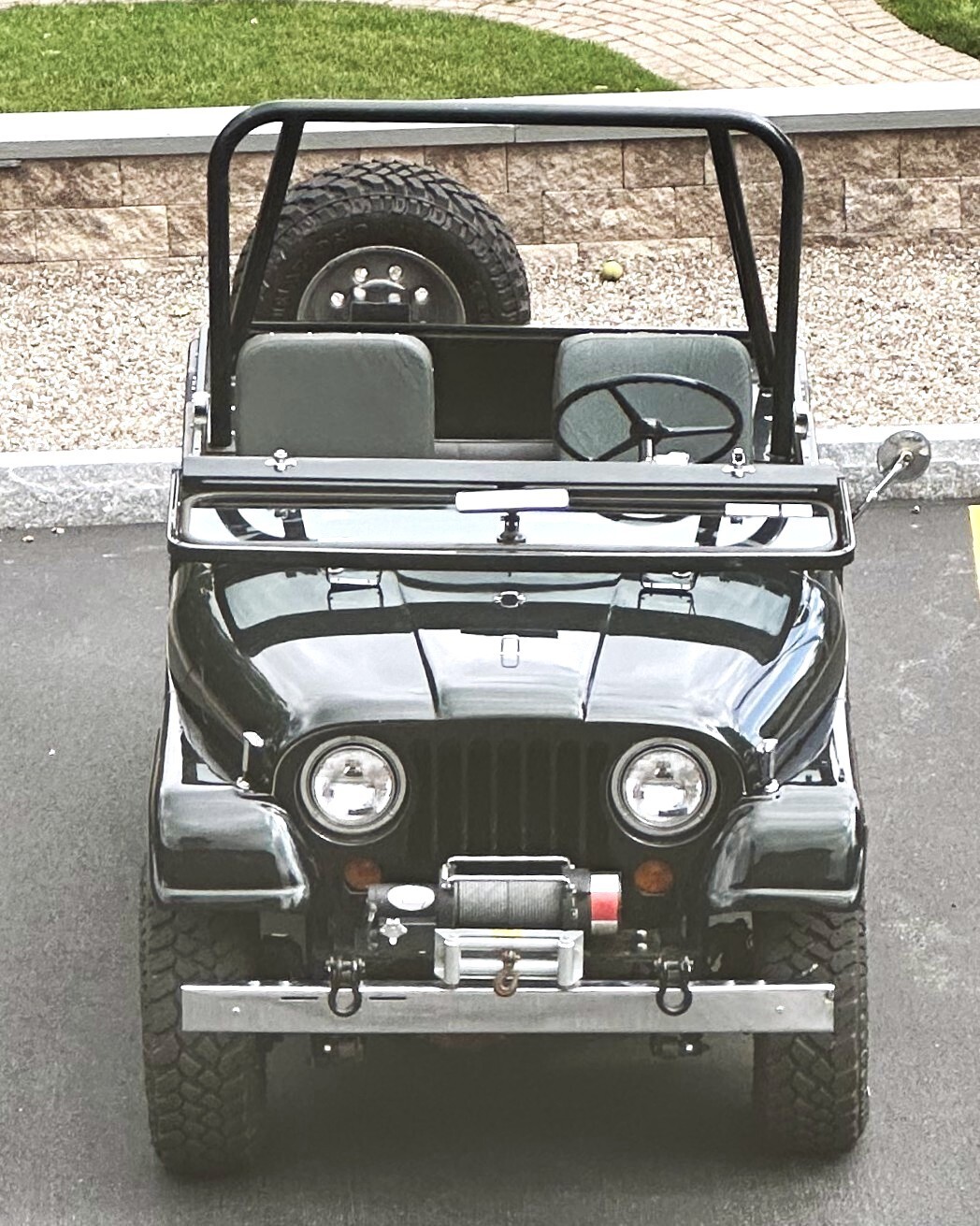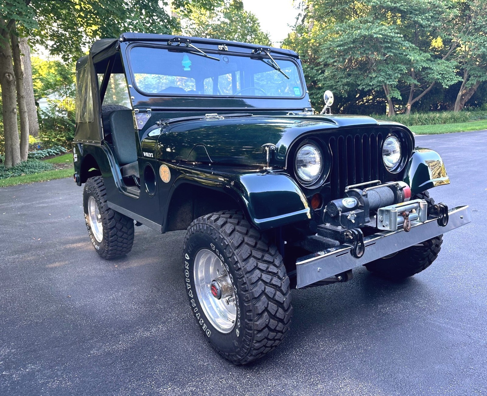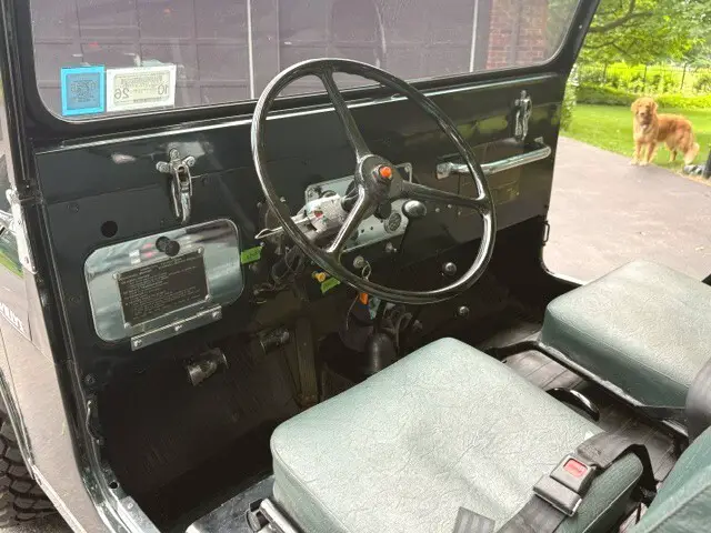 This 1955 Jeep is a military spec M38A1. It is the rugged military Jeep that the CJ-5 was based on. It was 'civilianized' with chrome wheels and a beautiful dark green paint job but retains it toughness, military ID plate, gauge cluster and combat headlamp switch. It is a classic off-road vehicle with a green interior and dark green exterior color. This SUV has a 3 speed T-90 manual transmission, 4 cylinder engine with 4WD, making it perfect for exploring rugged terrains. With features like auxiliary heating and a trailer hitch, this vehicle is not only stylish but also functional for outdoor adventures. A new winch was recently installed. This Jeep passed New York State Inspection within the last month, and comes with a clean vehicle title, making it a reliable choice for anyone looking for a vintage vehicle with modern capabilities.