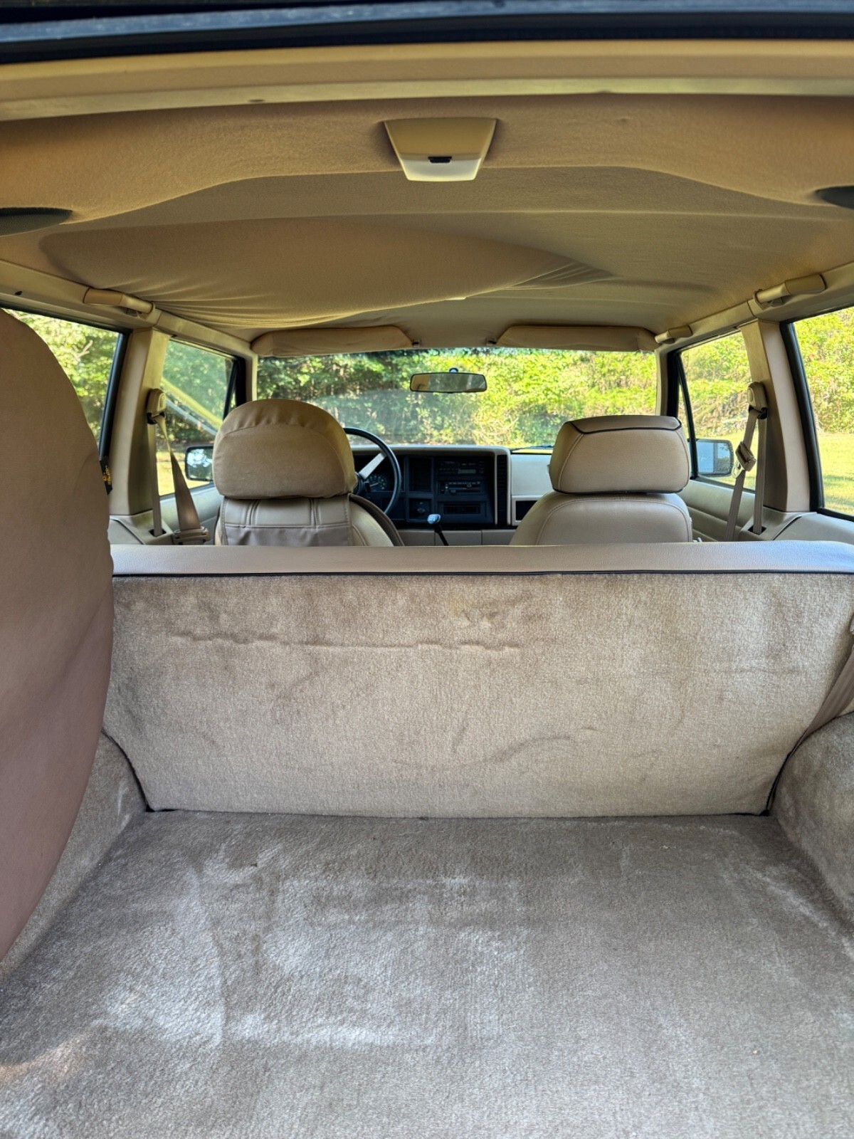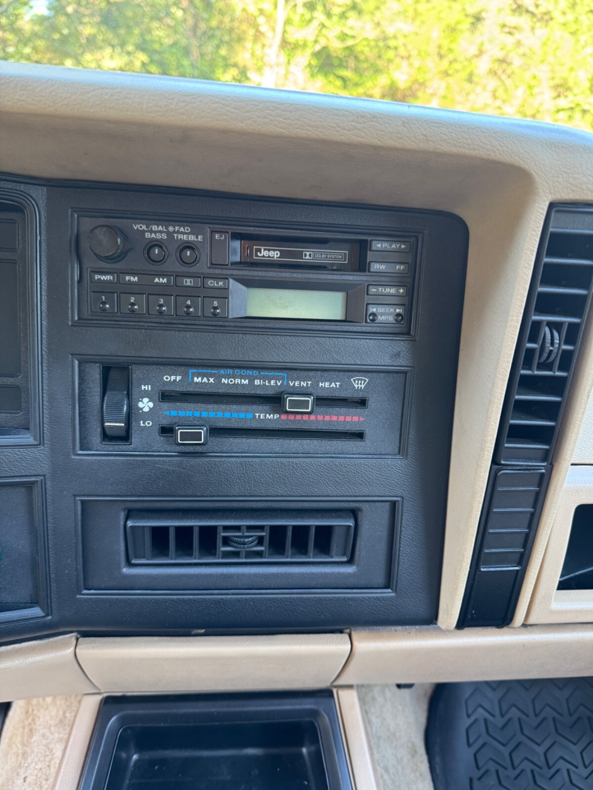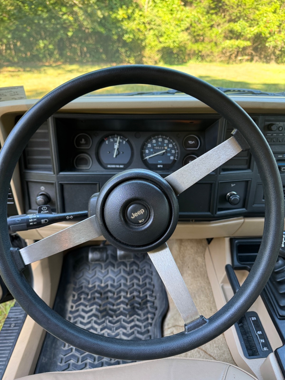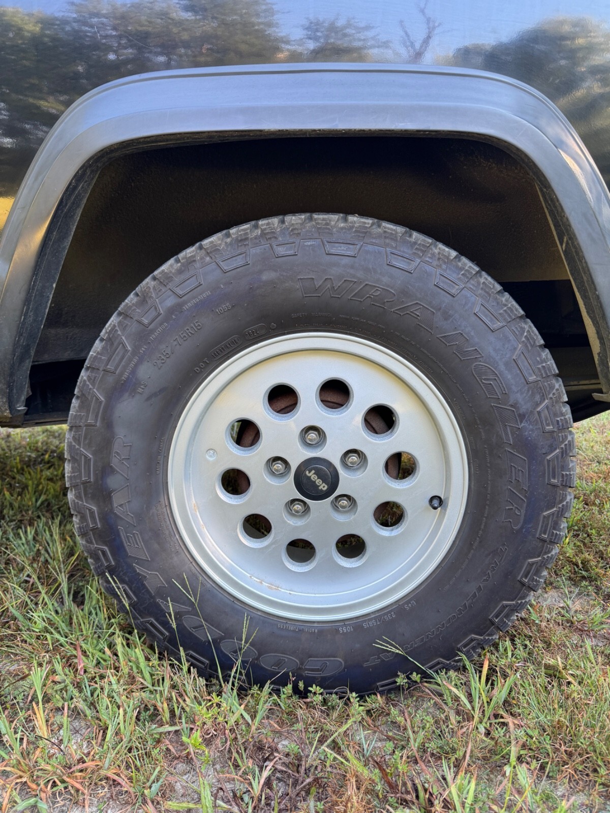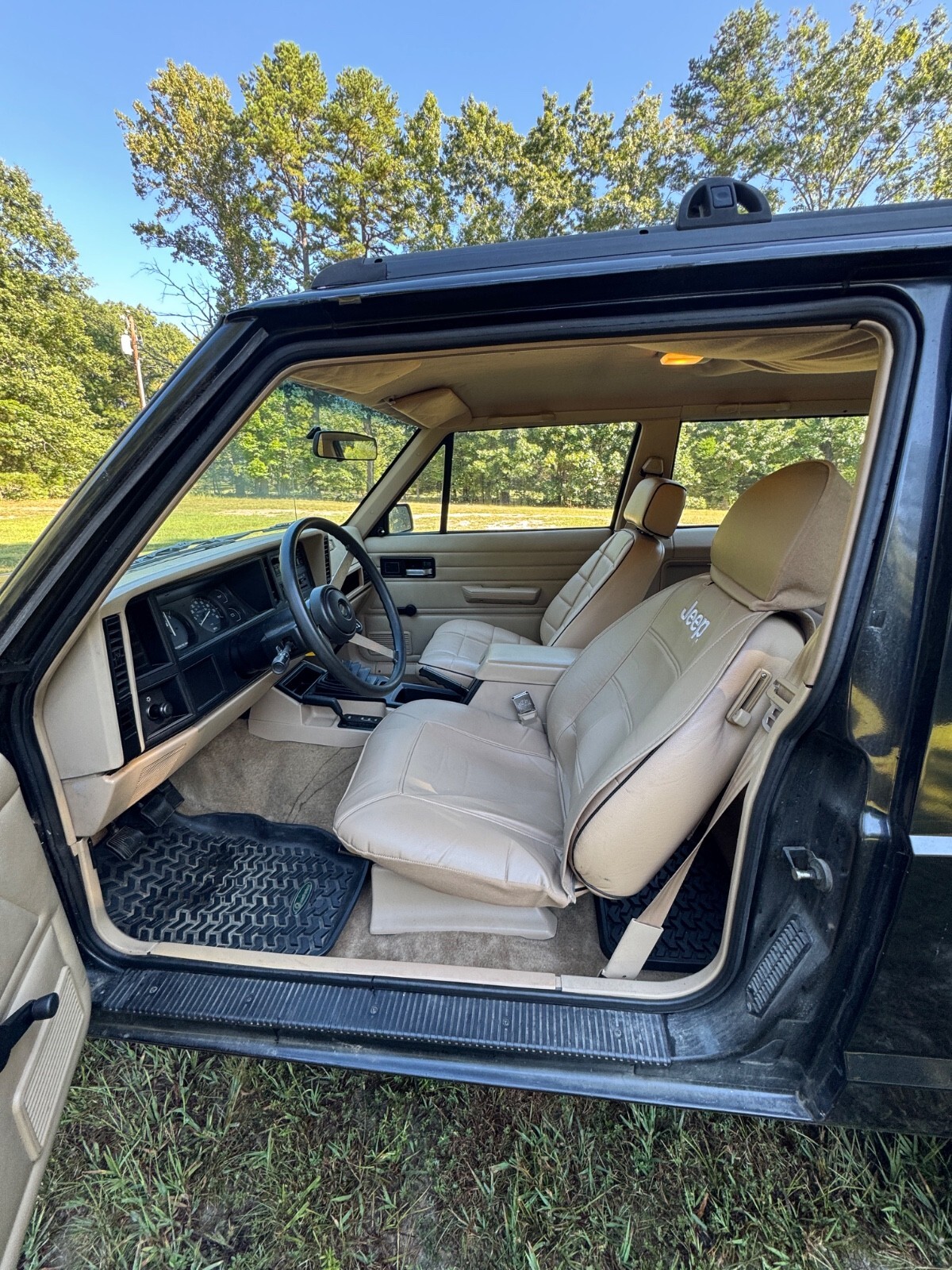 Clean, stock XJ. Rare and desirable combination: 2 door, 4x4, 5-speed manual, 4.0L engine. Seats reupholstered with plush vinyl. Base model w/ factory upgrades including A/C, bucket seats, 15” 10-hole wheels, Dana front axle. Accident free. In the last year: new Goodyear Wrangler tires and professionally undercoated with lanolin to prevent rust. Installed Big 7 cable upgrade.