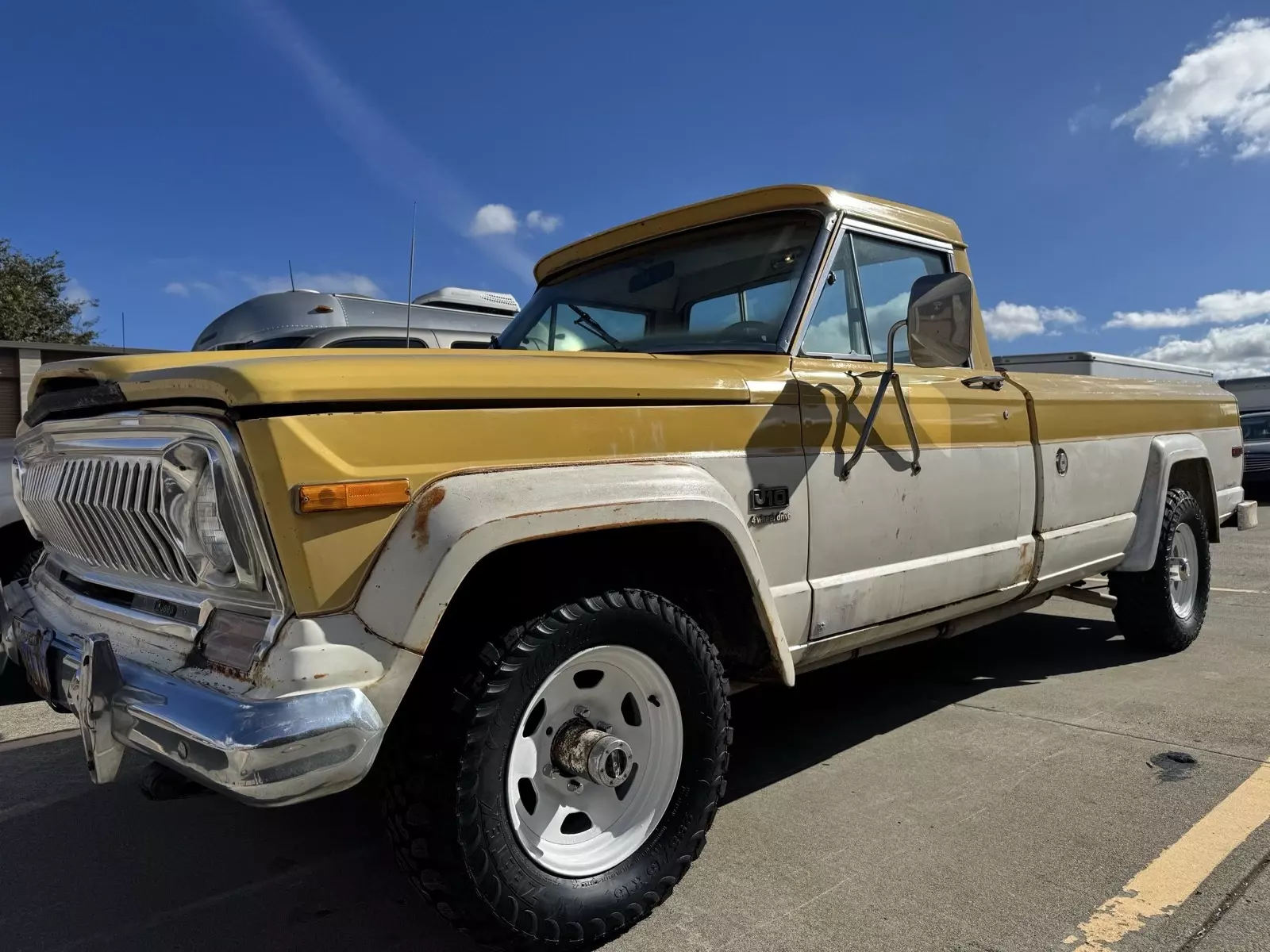 The 1974 Jeep J10 is an original vehicle that has been owned by the current owner for one year. It is a drivable vehicle that is not regularly driven, making it a unique find for collectors or enthusiasts of old Jeeps. With its vibrant yellow color and clean title, this Jeep J10 is sure to stand out in any automotive collection. At only 126,000 miles, this vehicle is a rare find for those looking to add a piece of automotive history to their portfolio.