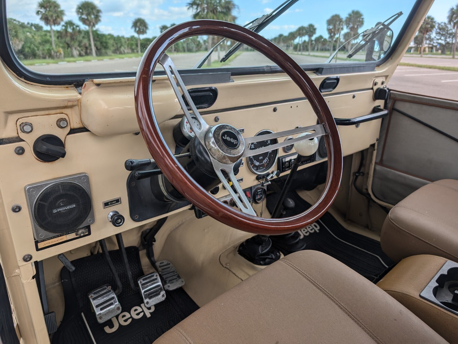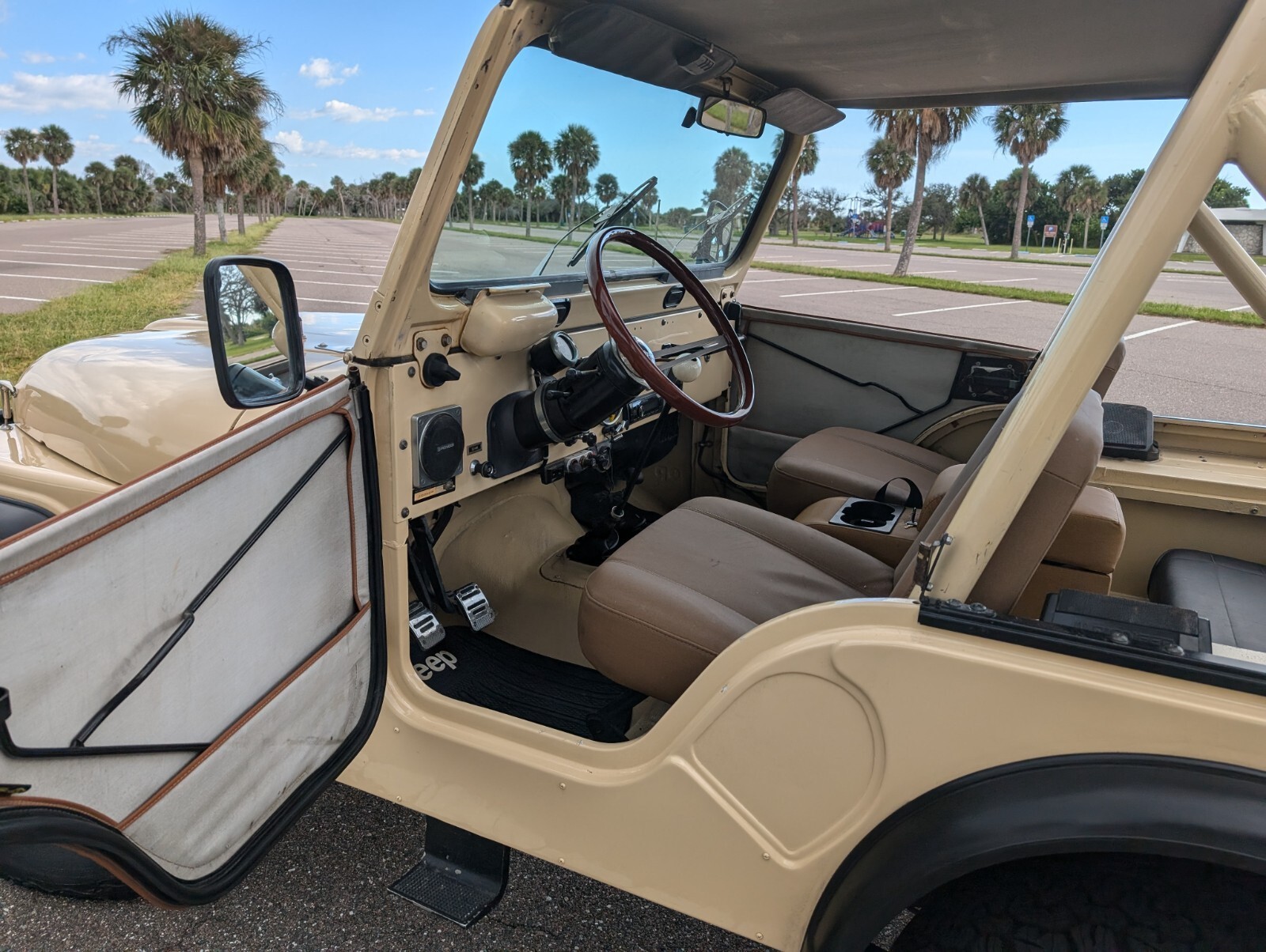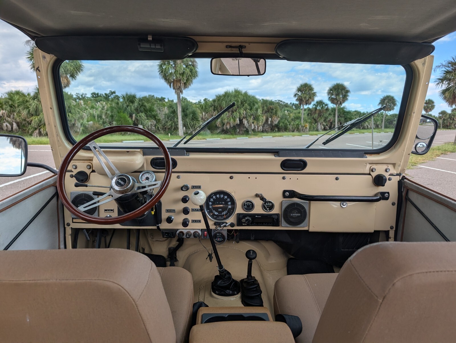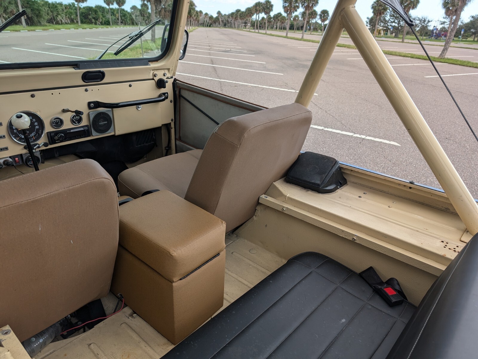 Inside, enjoy your favorite music with an upgraded Bluetooth stereo system connected to four speakers. This classic tan CJ5 gets constant compliments and turns heads everywhere it goes.