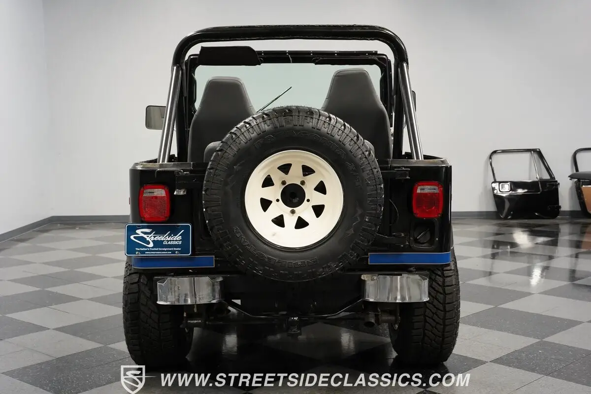 Inside, this CJ retains its military no-frills personality with the exception of a redone set of front bucket seats that offer far more lateral and lumbar support than its military predecessor. A three-spoke tilt wheel sits before a column-mounted shifter and gear selector. Offset to the wheel's right sits a 6,000-rpm tach, while the larger speedometer and corresponding ancillary gauges sit mid-dashboard. HVAC controls consist of a series of push/pull and twist knobs, making it easy to keep your eyes focused out the upright fold-down windshield. A chrome expletive bar gives the front passenger something to grab onto when the road disappears and their center of gravity begins to shift outside of their comfort zone.