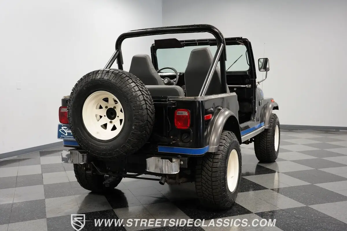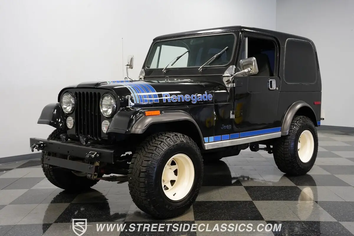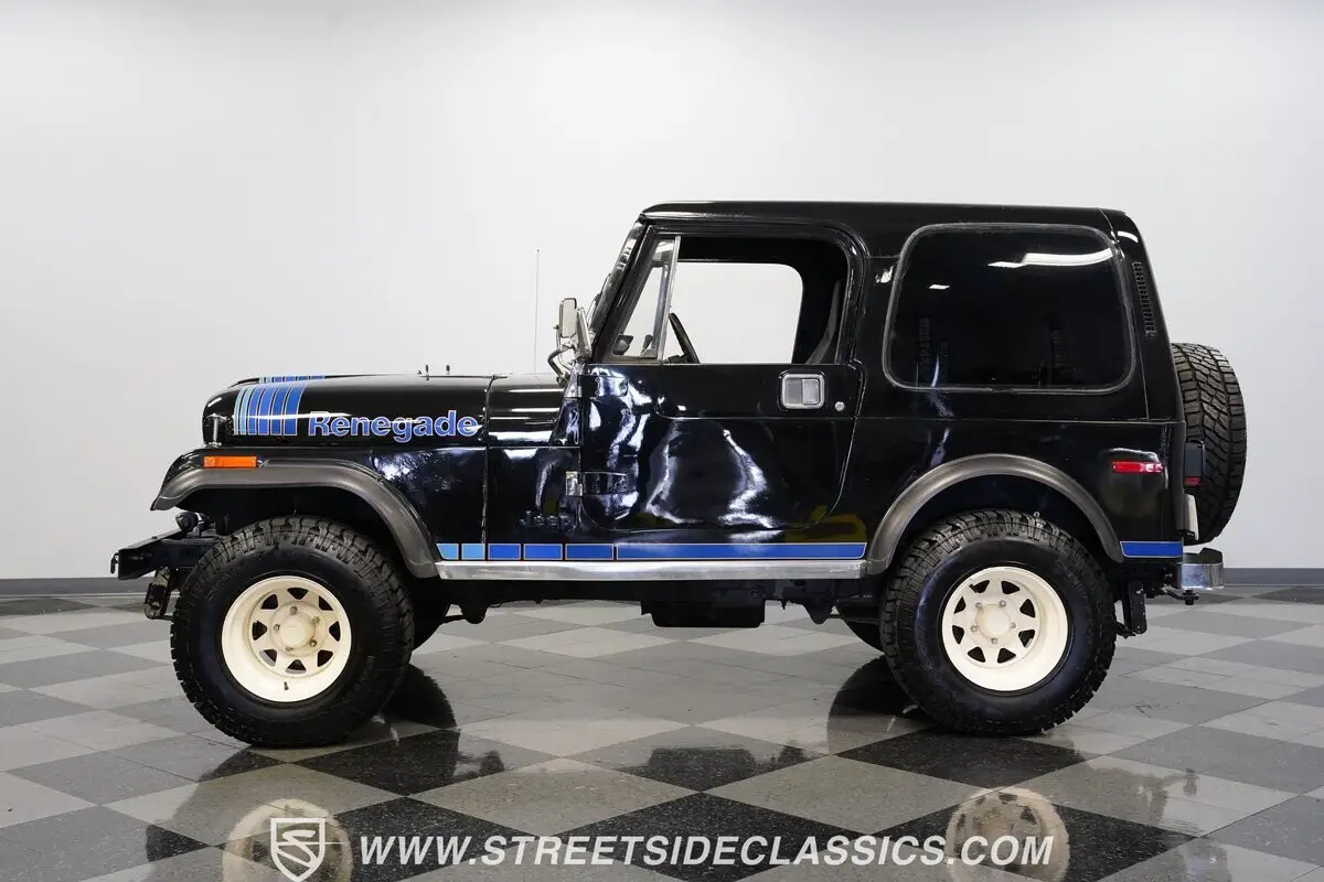 Taken from the army and made for the masses, few trucks can compare with the iconic status of the Civilian Jeep (CJ) series of one of America's favorite vehicles. This 1977 Jeep CJ7 Renegade comes decked out in a deep black exterior paint featuring blue hood and trim graphics to give it even more charisma. Keep its removable hardtop on, and you're ready to take on any weather conditions that come your way. Or, take the top off and enjoy the fun and leisurely side of this off-roading warrior.
