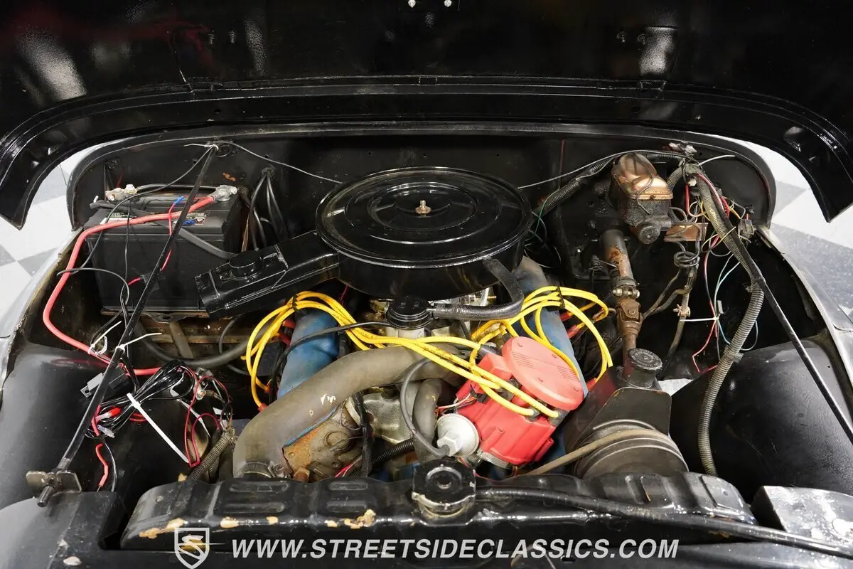 Under the hood, we find a big 360 cubic-inch V-8 engine, which has received a new ignition switch to go along with a new single two-barrel carburetor. A set of long tube headers feeds into a true dual exhaust to give this truck a bit more power and sound than its enlisted forebearers. That power is funneled through an AMC version of a TH400 three-speed automatic transmission on its way to all four wheels to give this truck maximum traction.