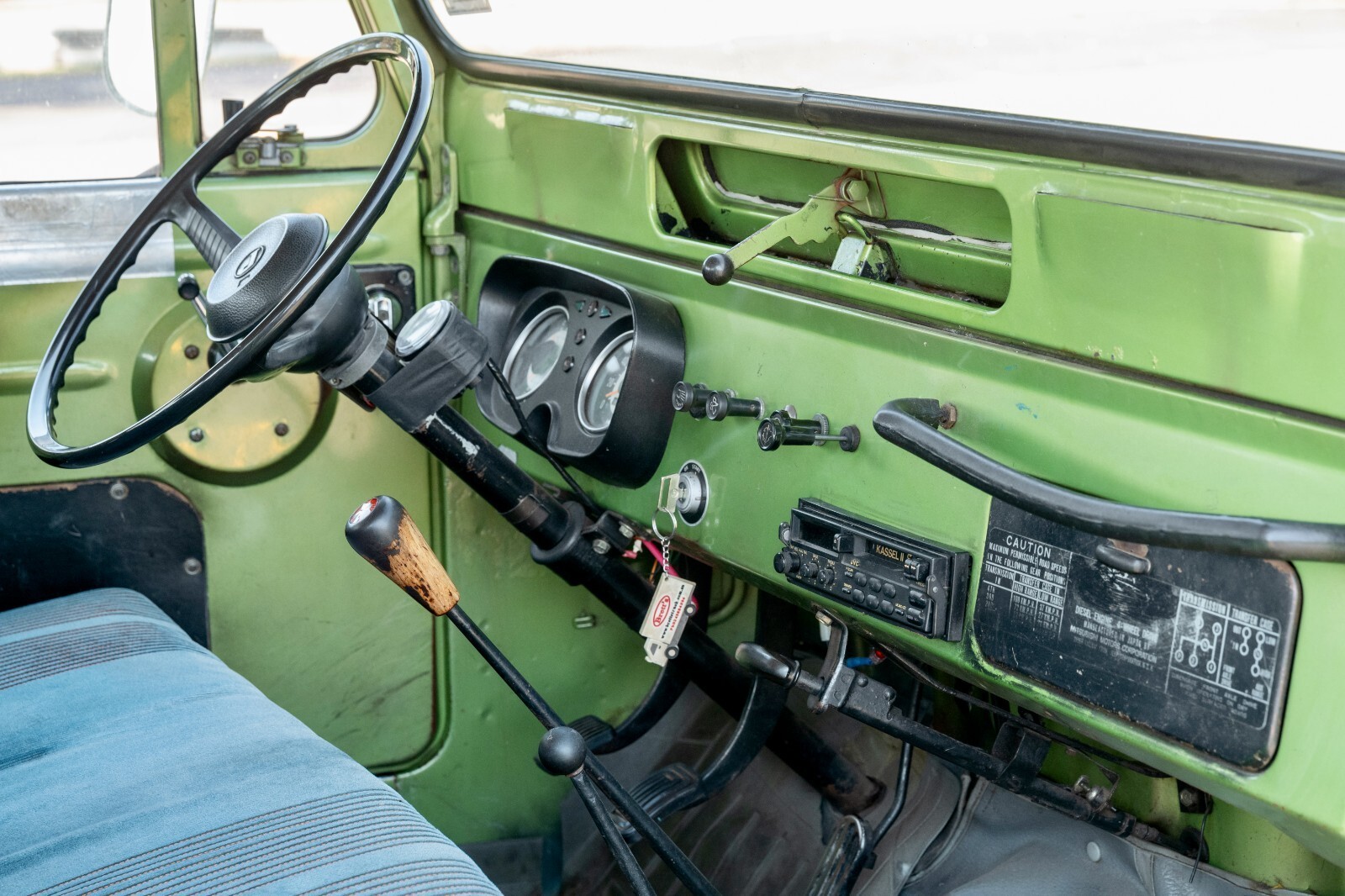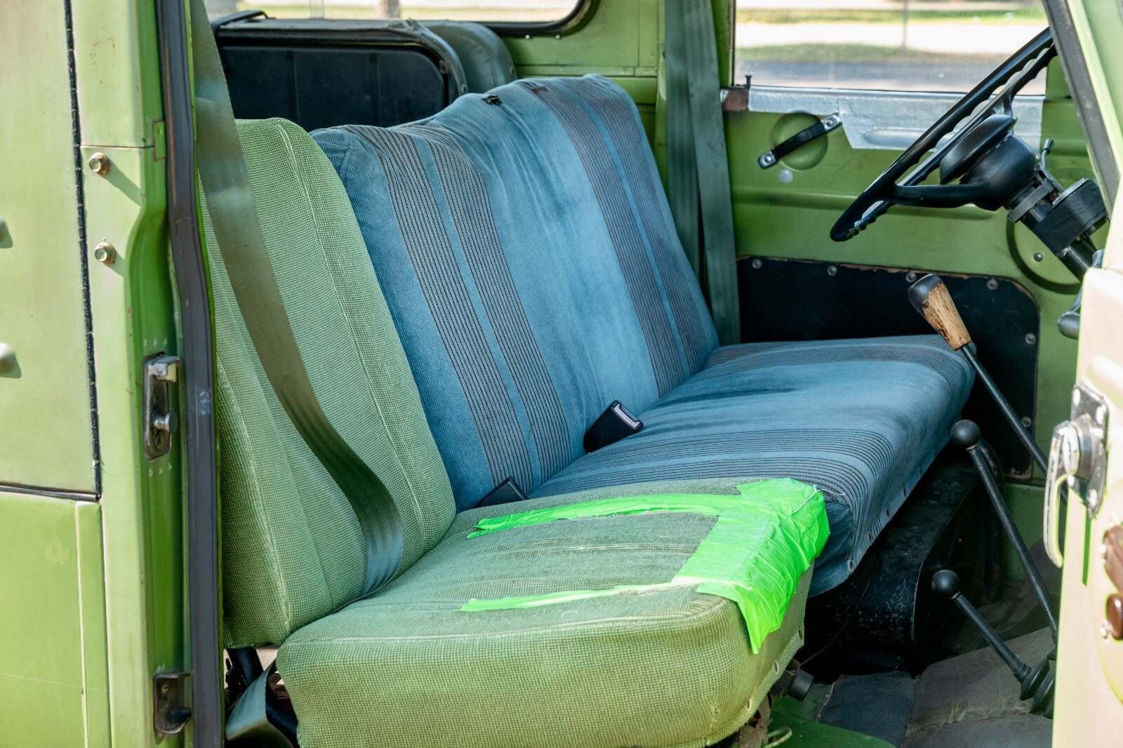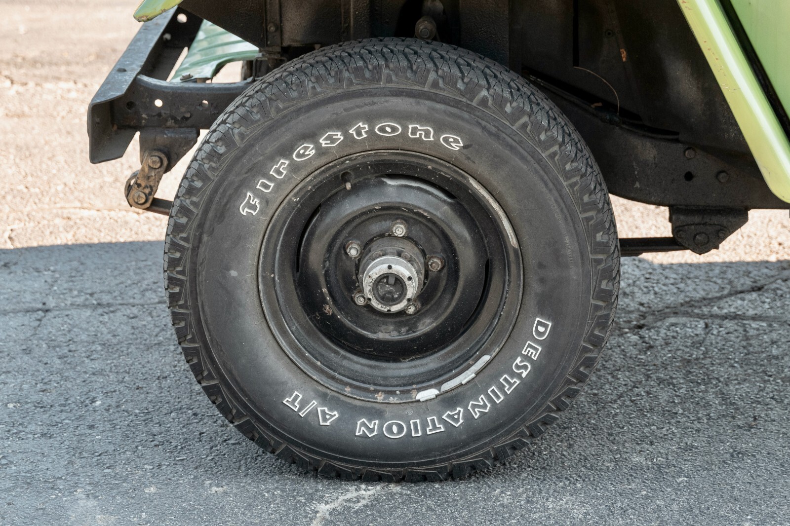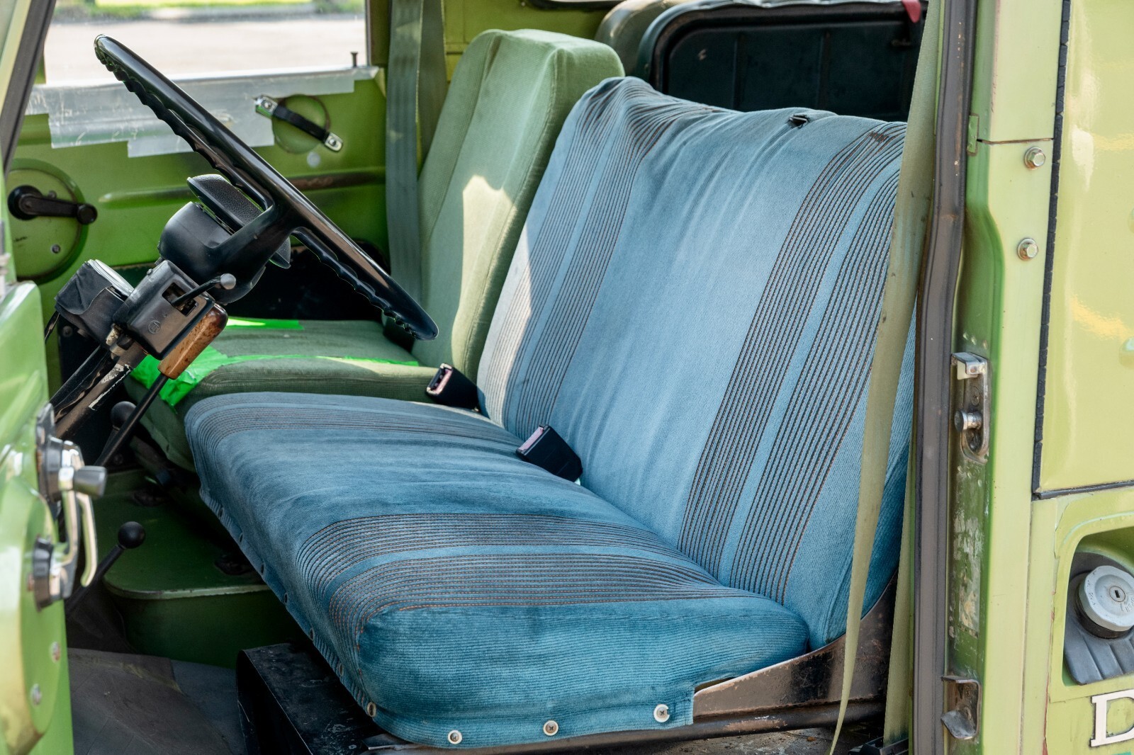 The odometer registers 81.699 kilometers (50,765 miles). The diesel engine was rebuilt 7,000 km ago. Brakes were replaced in 2020 and steering mechanics including tie rod ends and tube adaptors were replaced in 2021. The exterior and interior show the patina expected of a forty-seven year old industrial vehicle. The vehicle comes with lots of parts including enough oil and filters for another 50,000 miles. (see photos of parts in the rear storage area.) The Jeep comes with some service records and literature; however, the owner has done much of the maintenance himself. It has been stored every winter and has not seen any snow.