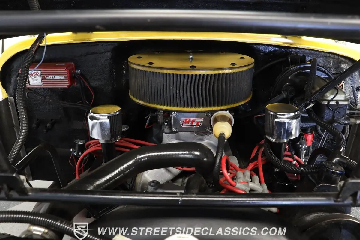 Powering through mountain trails comes courtesy of a 360 V8 engine paired with a TH400 3-speed automatic transmission for effortless crawling over obstacles. The engine bay presents cleanly with aluminum intake and heads, QFT 4-barrel carburetor, and MSD ignition for reliable starting at any elevation. Power steering and brakes with front discs provide confident control when navigating difficult terrain. Headers connect to dual side pipes, producing an exhaust note that echoes through canyons and valleys as this CJ7 conquers the wilderness.