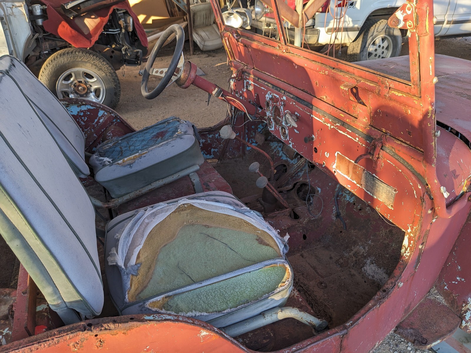 Appears to be complete but will need windshield and gauge glass and all the usual sitting vehicle stuff - I have not done any work to it with my four years of ownership. I had plans, but those seem unlikely to come to fruition now. Would be a great trail/fun/weekend rig but definitely could be restored easily enough since most everything is there.