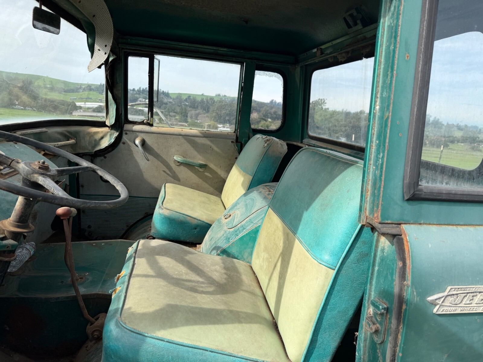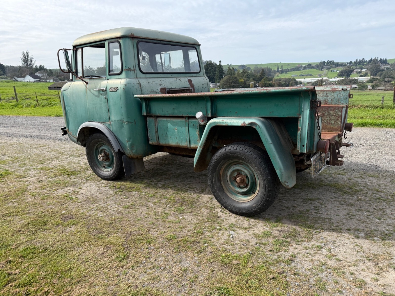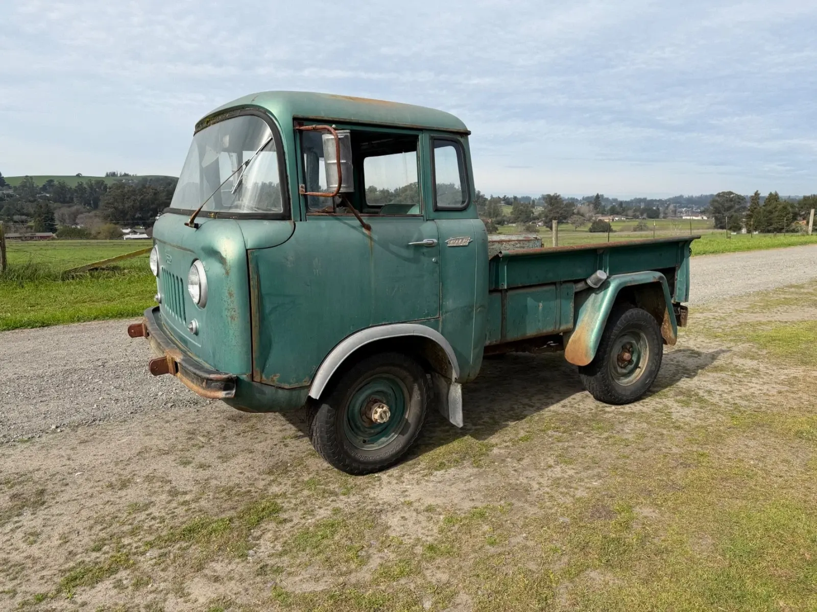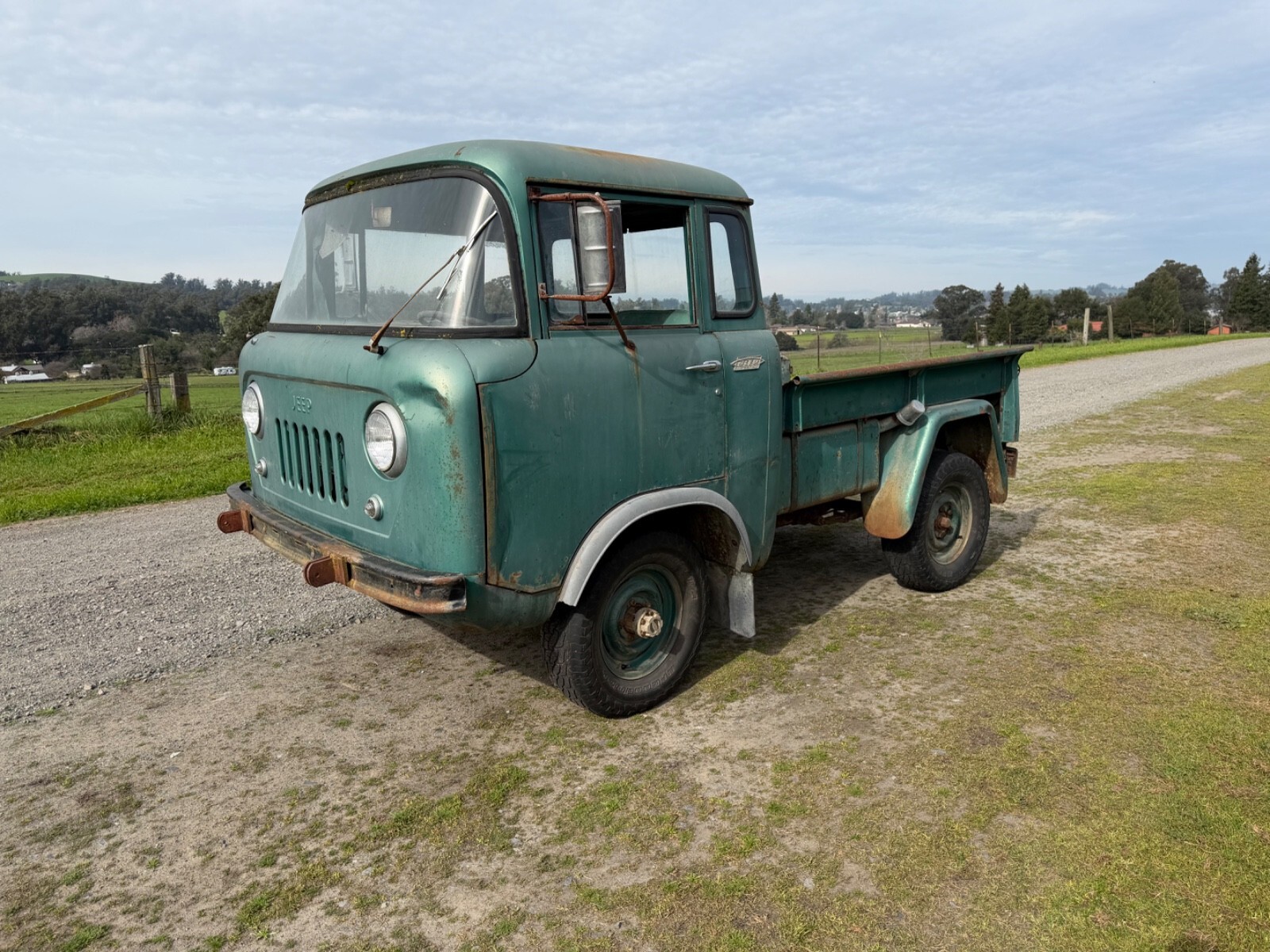 This 1963 Jeep FC150 is a non running, but complete project, last licensed in 1972, it’s been sitting in a barn since, but the barn was ready to fall down so it was pulled out. This truck is very complete, with rust in the right rear cab corner near the battery compartment and some in the bed where a bail of straw was sittin, otherwise it’s very solid and had 61732 miles on it when parked by the original owner, everything is there, but the tailgate. The drivetrain is complete, the engine likely needs to be gone through, I looked at a couple cylinders with a bore scope and didn’t see a lot of rust, but it better to go through it.One small quarter window is broken out, the rest of the glass is good, it rolls and steers.it has a couple small dent, the one by the drivers headlight can be reached easily from the inside. Great original project to restore, never been repainted. I will help your shipper, and I live close to West Coast Shippers if someone want to export it I can deliver it there with the title no charge.