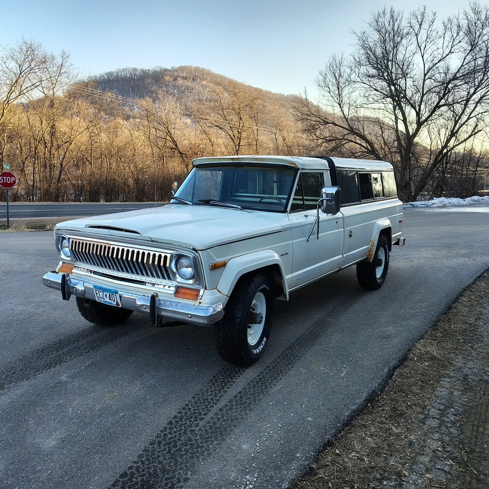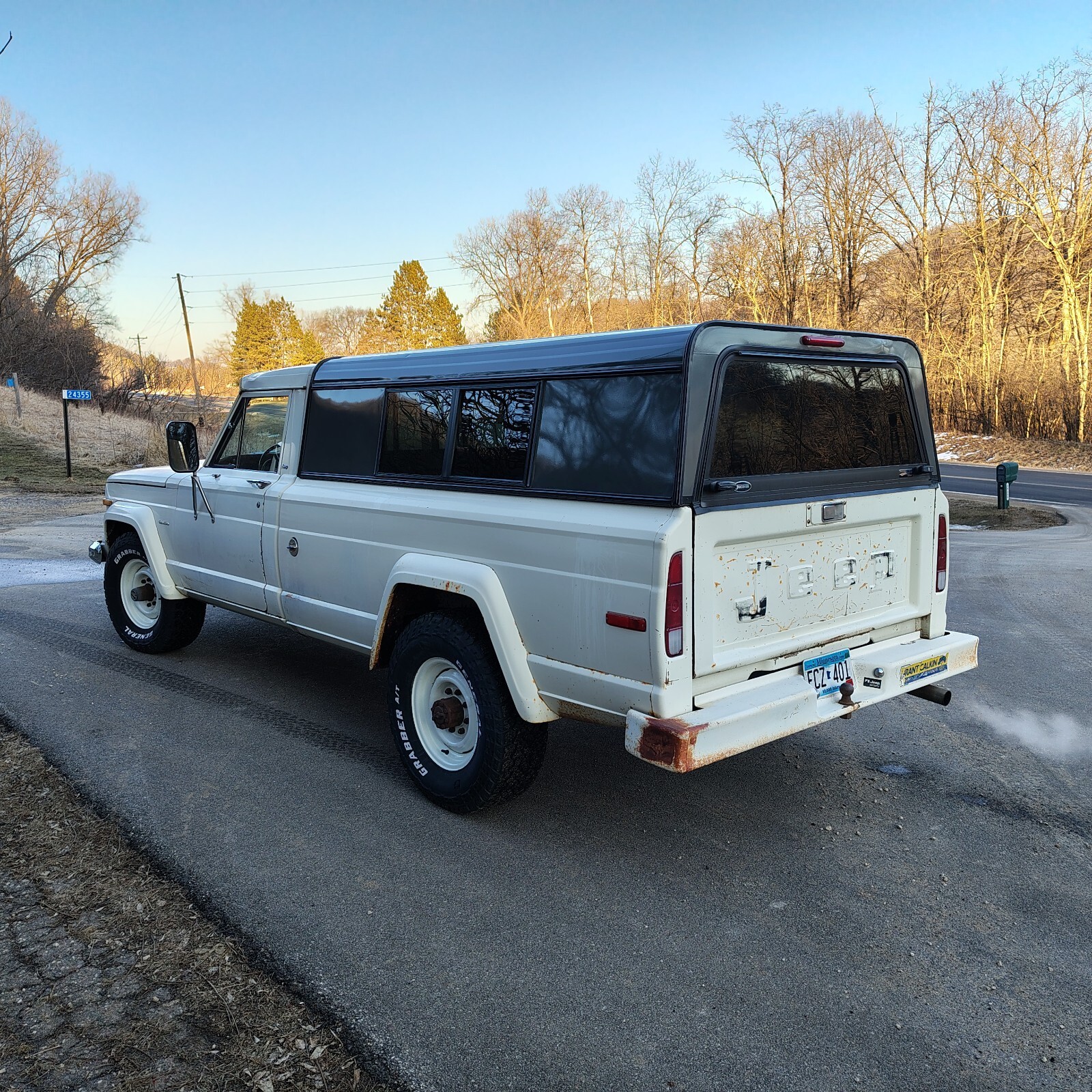 If you’re a Jeep J-series fan and are looking for a nice driver or for a super solid restoration project, consider my 1977 J20, 360 2bbl V8, T18 four speed manual, 3.73 axle ratio truck. It came to me in Minnesota from New Mexico. I completed the installation of the supplied remanufactured engine and necessary related work in 2021. From that time it has served as one of my summer drivers. The new engine was installed at 73000 and now has 82000 and runs great. Other work completed along with includes: (clutch) (custom reproduction exhaust) (steering gear & hoses) (front leaf springs/shocks) (brakes) (front wheel bearings & hubs) (rear axle shaft seals) (service transmission, transfer case, differentials, seals/gaskets) (General AT4 LT265/75R16 tires) (belts/hoses/filters) (HEI ignition, wires/plugs) (poly fuel tank), among others. The AC system is intact. I never attempted to use it. And, it is all there. The cruise control functions. The wiring harnesses are in nice, original condition except for the minor ignition requirements. Everything works. All lights and instruments. It does need a new windshield was bottle. All windows and doors operate crisply, though the front windshield is cracked. The seat is reupholstered original. The dash pad is destroyed from the NM sun and there is some damage to the metal dash from sound system related (?) work. I will include a complete dash assembly with instruments, wiring harness and nice dash pad. The body is original, never ever any body work! It is very nice for an original 49-year-old truck. There is some rust in the floors, which I started to repair a couple years ago but never finished. The are some “pimples” beginning to show on the tops of the rear fender flares. The inside of the rear flares is scaly rust and will need to addressed soon. There are some dings in the sheet metal. The most noticeable blemishes are on the cab roof and the front of the RF fender, behind the bumper. It really does run, drive and look nice! I would really like to give it the attention it deserves but I don’t see it happening for at least several years so I really should let it move on to someone else.