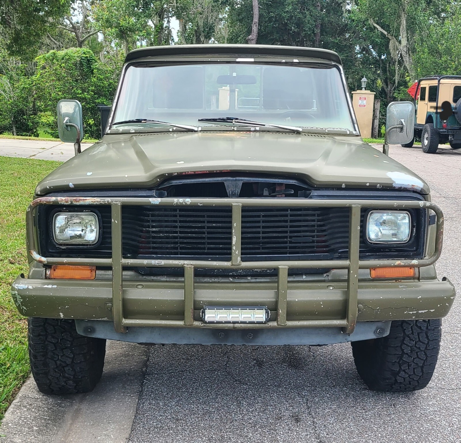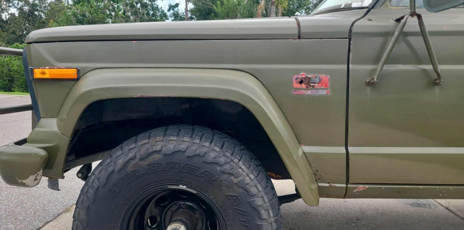 It has a nice BJs 2 in suspension lift installed. Newer black rims wrapped with 33 in Falken Wildpeak ATs.