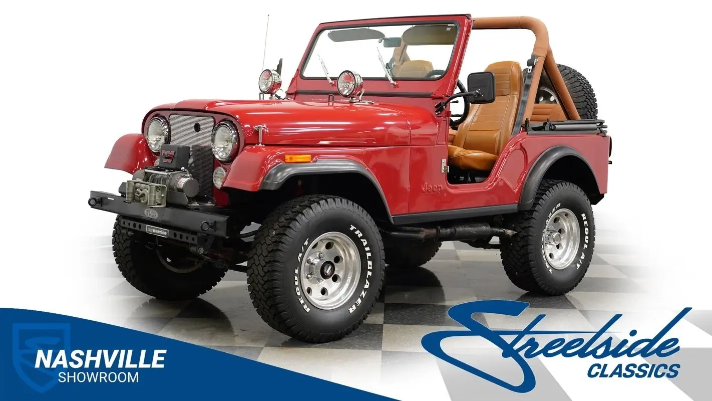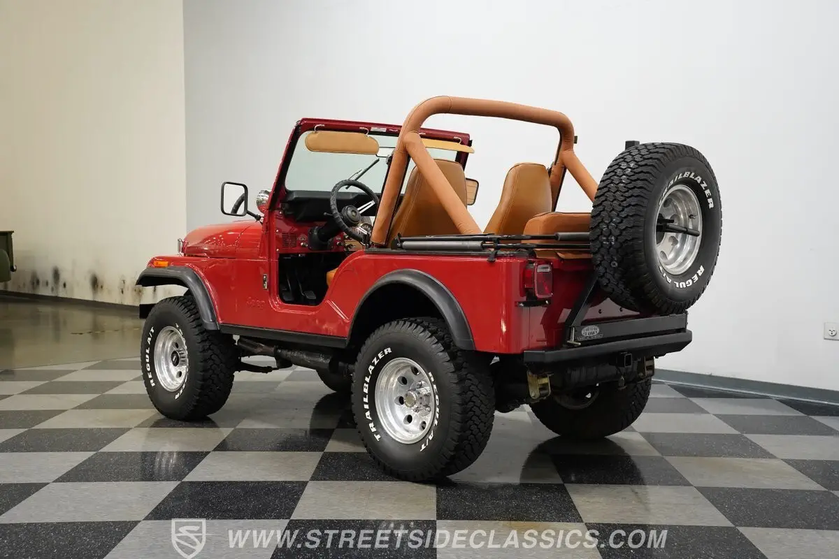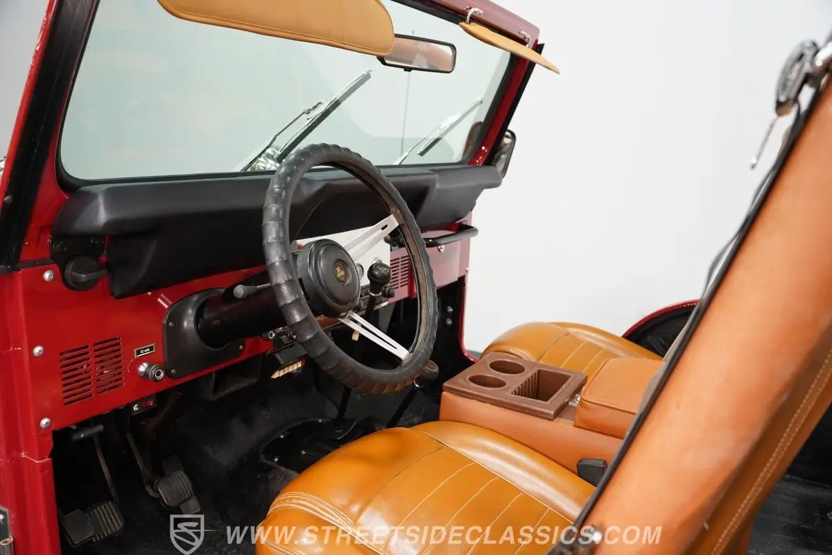 Taken from the army and made for the masses, few trucks can compare with the iconic status of the Civilian Jeep (CJ) series of one of America's favorite vehicles. This 1982 Jeep CJ7 4X4 is fully repainted in an eye-catching bright red, with a complementary tan soft top and doors. With its hood-mounted spotlights, grille guard, heavy duty winch, tow hooks, and upgraded bumper-mounted, swing-away spare tire, this CJ is ready to enjoy the fun on or off road whenever you are.