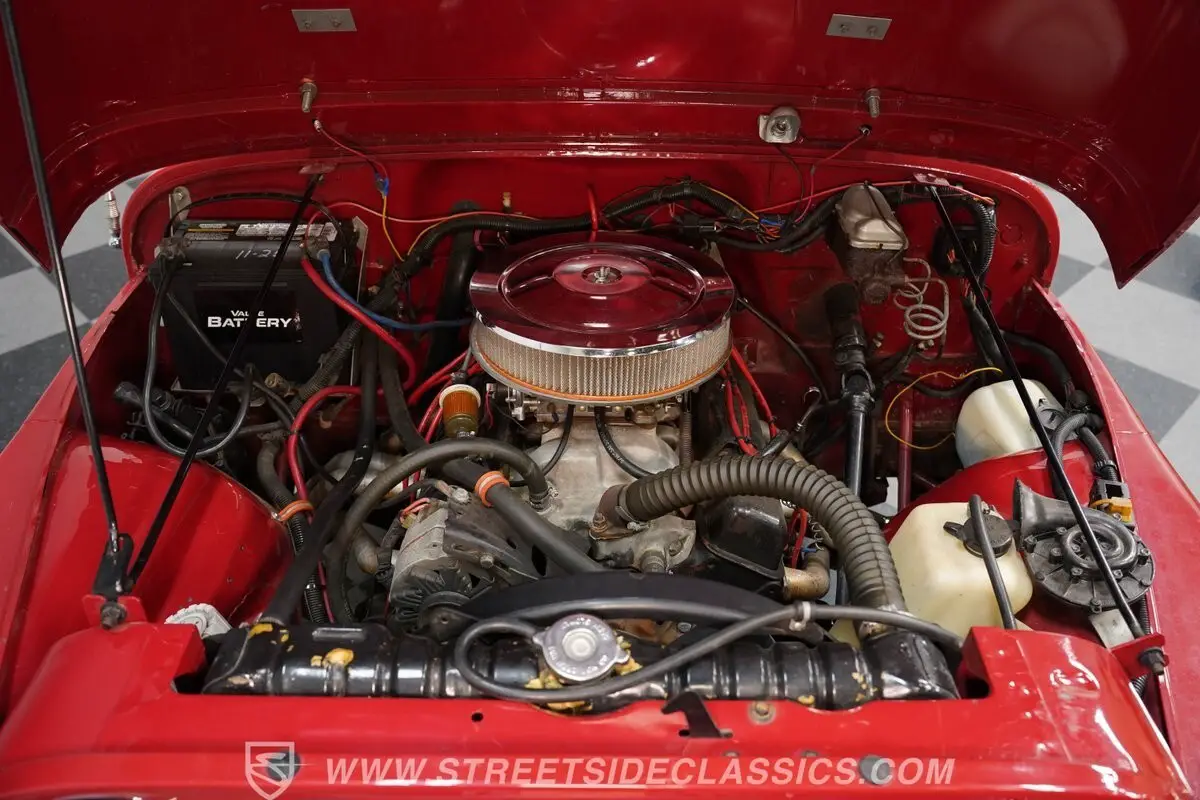 Under the hood, we find a transplanted 350 cubic-inch V-8 engine. Fed by a single four-barrel Edelbrock carburetor, spent gases are done away with via a set of long tube headers and out of a trick side-exit exhaust. That power is funneled through a tried-and-true four-speed manual transmission on its way to the rear wheels. Or engage the manually locking front hubs, shift into four-wheel-high or four-wheel-low, and send power to all four wheels for maximum traction.