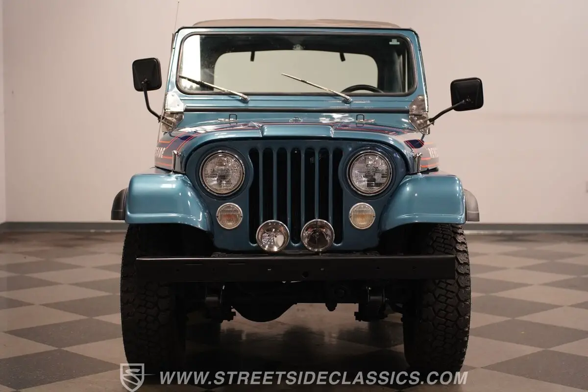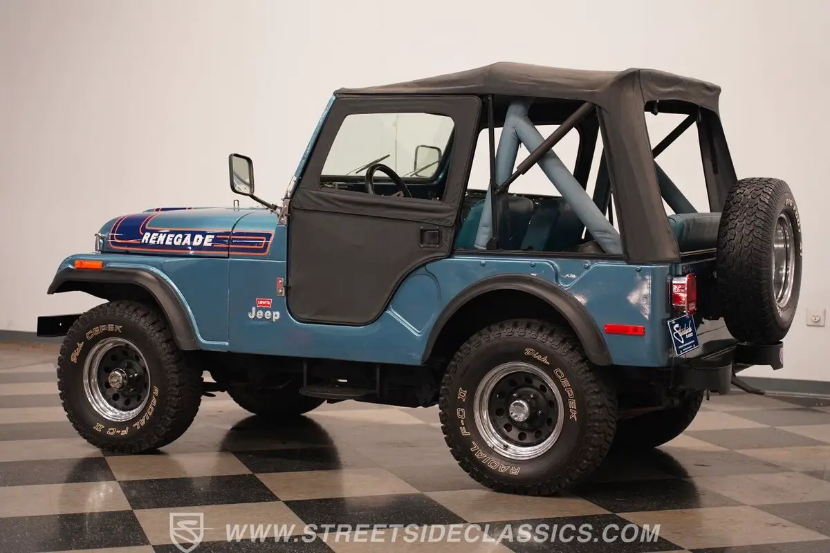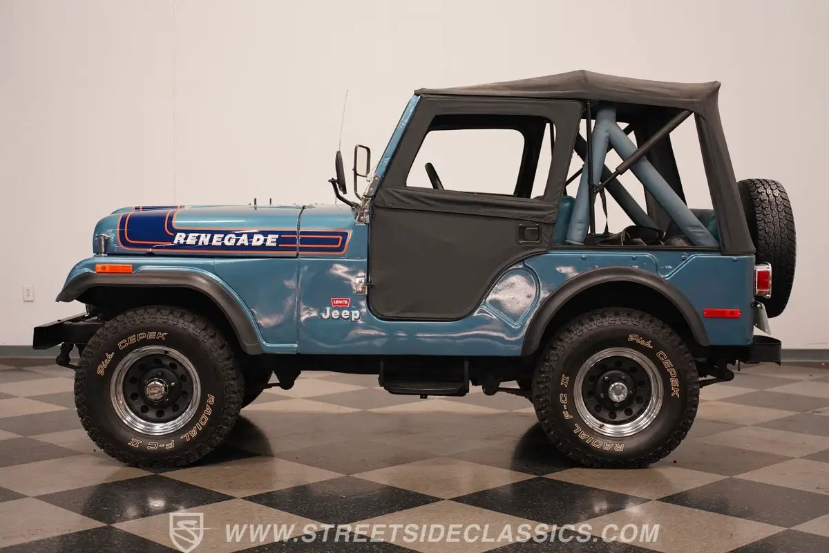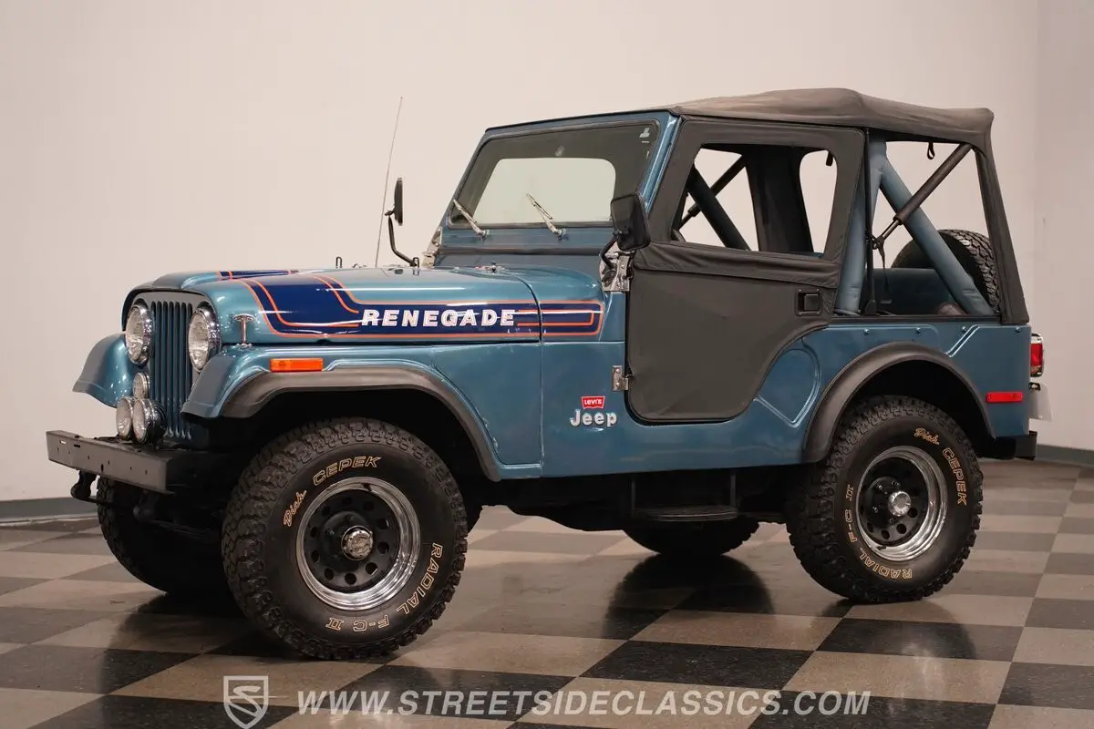 This 1976 Jeep CJ5 Renegade Levi Edition, with its vintage engine and vibrant interior, encapsulates a spirit ready to tackle both roads and hearts. Combining rugged functionality with aesthetic appeal, this Jeep is not merely a vehicle, but a gateway to uncharted territories. Ready to make it yours? Call today!
