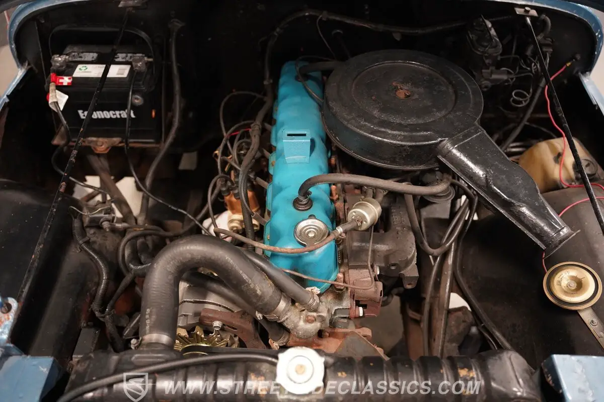 Mechanically, this CJ5 is equipped with a 258 CI Inline-6 Jasper engine, paired with a 4-speed manual transmission that commands respect on any terrain. The suspension, kept faithful with leaf springs and shocks, supports the vintage frame, providing a driving experience that's as authentic as it is thrilling. Despite its age, the Jeep runs with a gusto that matches its visual appeal, supported by a drum brake setup on all four corners.
