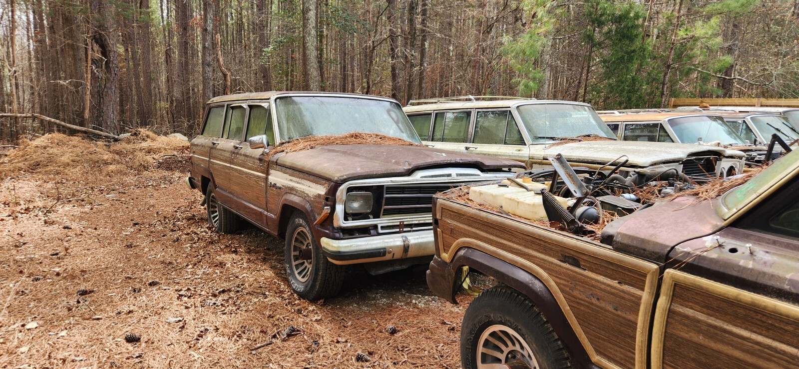 This auction is for 9 (yes nine) 87-91 Jeep Grand Wagoneers. I have been restoring Wagoneers for over 25 years and retiring soon.4 of these would have gotten restored and ran when parked 3 years ago. I'm sure with a battery and some starter fluid they will start again. The others are parts vehicles. I do not have the time nor energy to get them running and sell seperate. This auction is for the whole lot of 9. 8 of them have clean titles. One does not have a title. I will unfortunately not have a lot of time for questions. You will most likely need to come look at them in Durham NC. Feel free to text me at 919 341 5798. Thanks for looking.