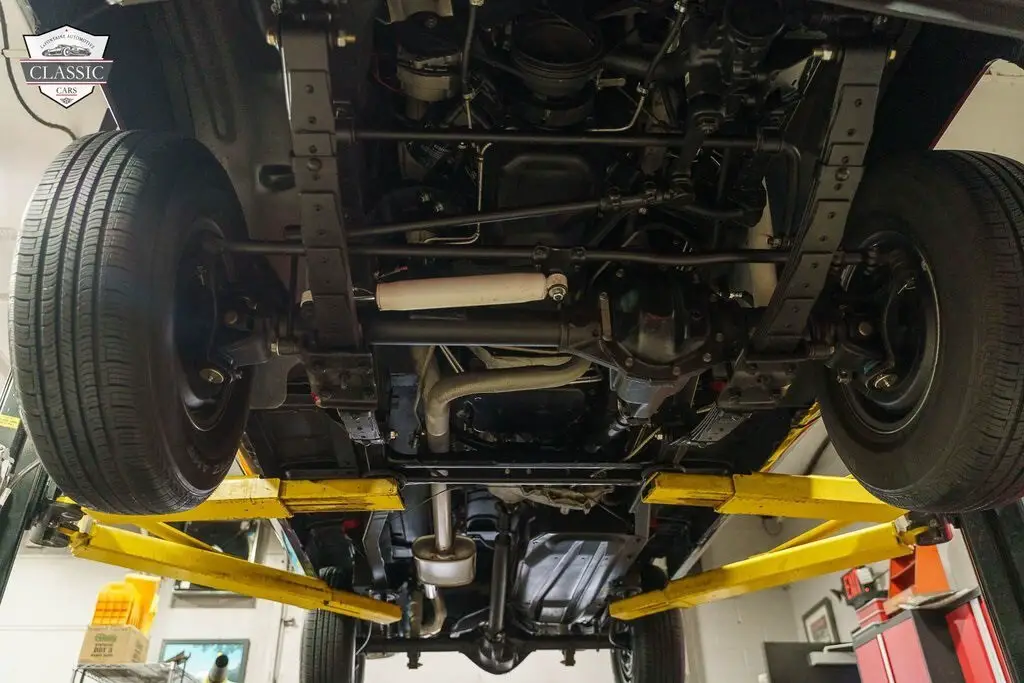 The truck was refinished in its factory Black Cherry as part of the refurbishment completed in 2019, 29000 miles have been added since 2019. Additional features include faux wood paneling, front vent windows, a rear wiper, a power tailgate window, and chrome accents on the window surrounds, door handles, mirror caps, roof rack, bumper covers, and grille.