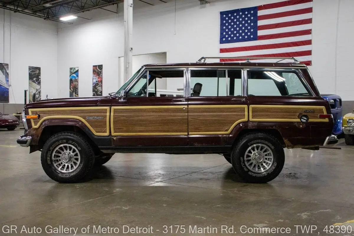 GR Auto Gallery is pleased to present this classic 1988 Jeep Grand Wagoneer for your consideration. This timeless SUV comes in a striking Grenadine Metallic exterior paired with a rich burgundy interior. Under the hood, you'll find a 5.9-liter V8 engine, paired with a smooth automatic transmission. This Grand Wagoneer is completely original and has been well cared for, featuring reworked rockers and floor pans, new sway bar bushings, a new fuel pump, heater block deletion, fresh oil changes, a new starter, and a new oil pan gasket among many other updates. This Jeep has been a reliable companion, having been on numerous long drives, making it ready for its next adventure. Drive this one out of our showroom or have us assist with shipping it to you anywhere in the United States! Don't hesitate to call us with any questions or for more information.