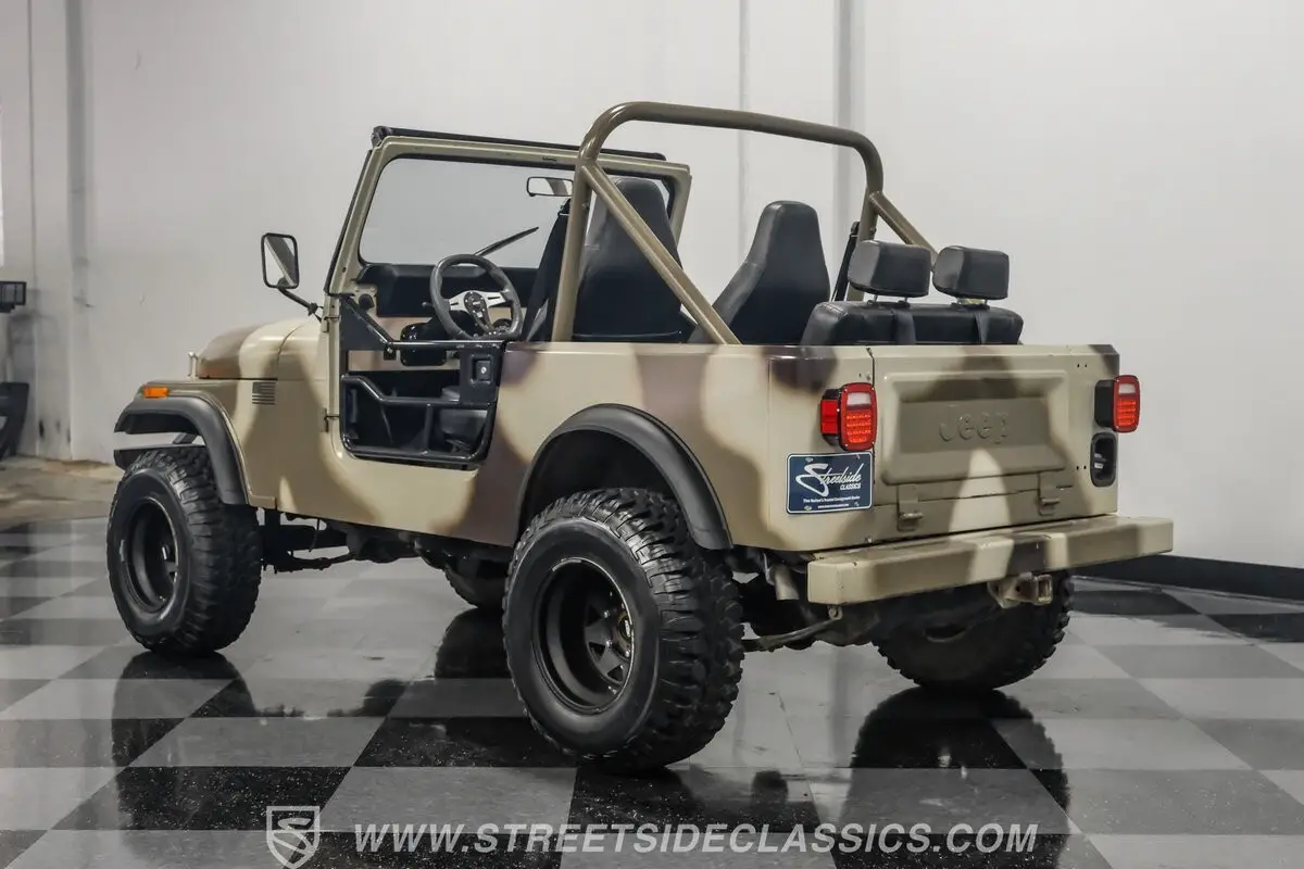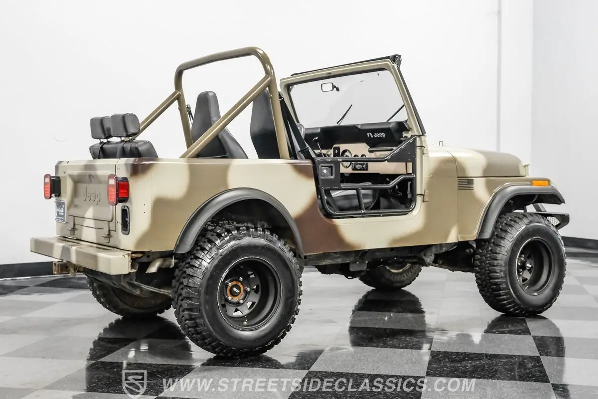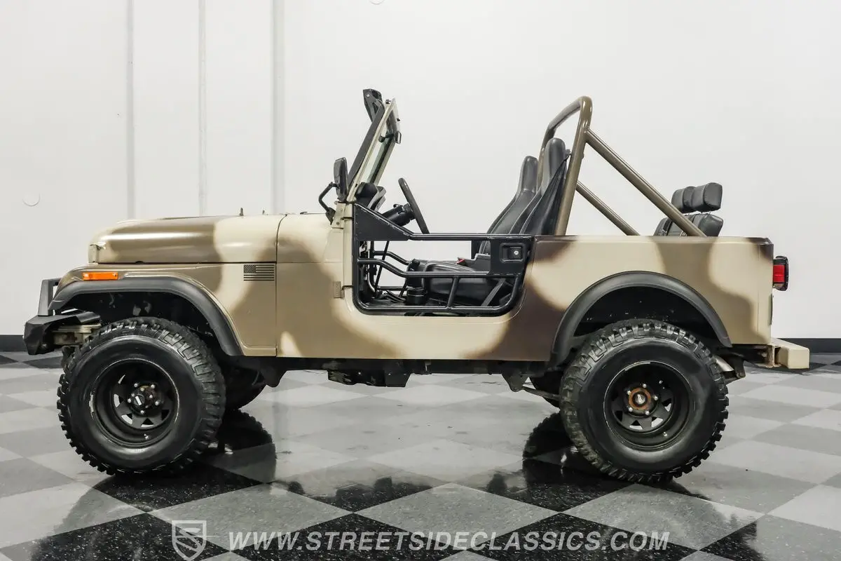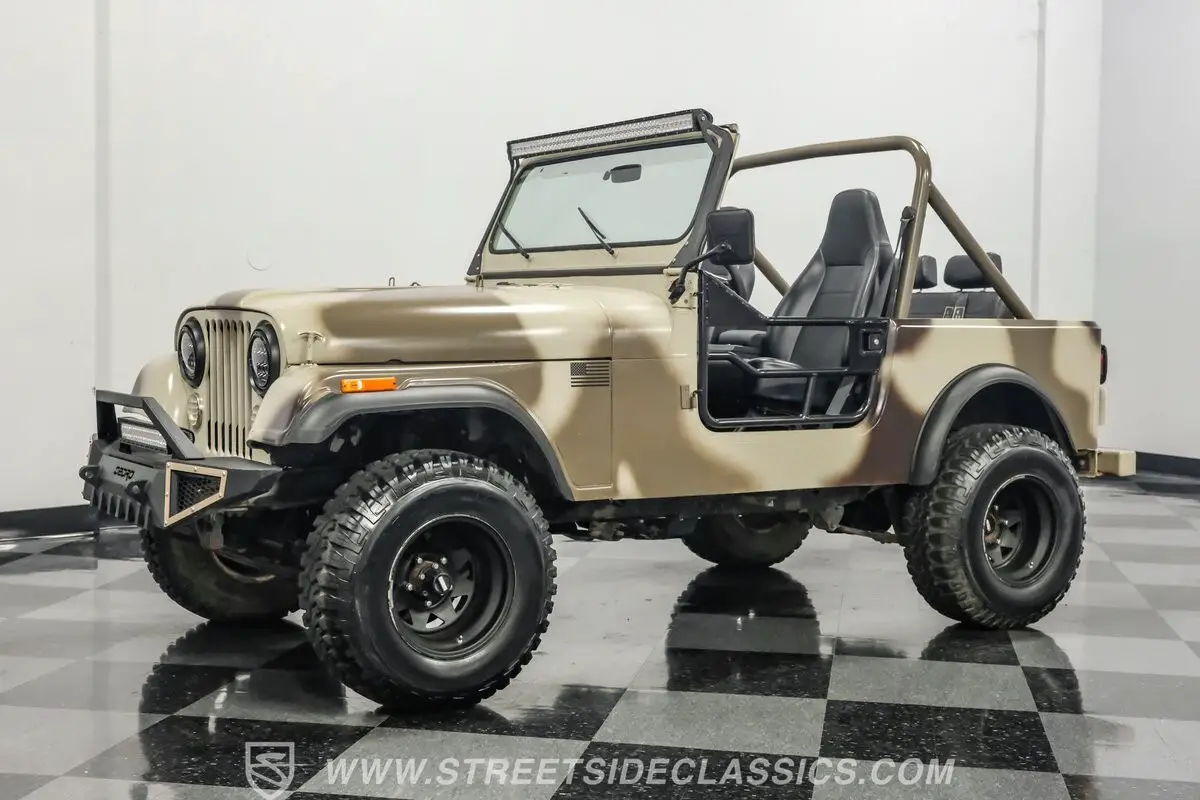 In terms of pure visual recognition, nothing comes close to the iconic Jeep brand. Before the Wrangler came along, the Jeep CJ series was literally a civilian version (CJ stood for Civilian Jeep) of the military variants, which meant it was a more driver- and passenger-friendly version. First introduced in 1945 with the Willys CJ-2A, this 1985 Jeep CJ7 4X4 383 Stroker represents the second-to-last year for the hardcore CJ lineup. Decked out in this ruggedly elegant tan camouflage paint, this CJ7 is equipped with steel rail half doors, a front Oedro steel bumper with a lightbar, overhead lightbar, and upgraded headlights to give it its own aggressive and unique personality.