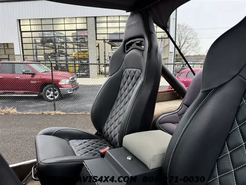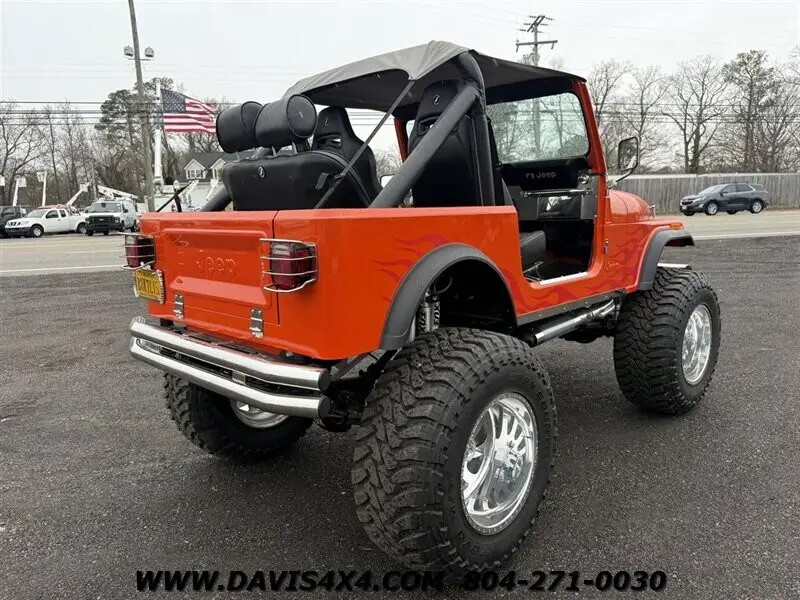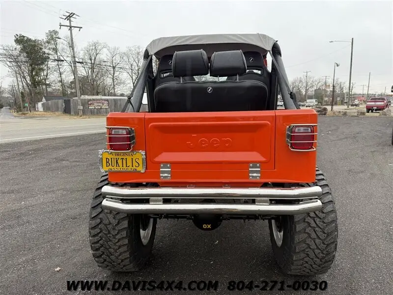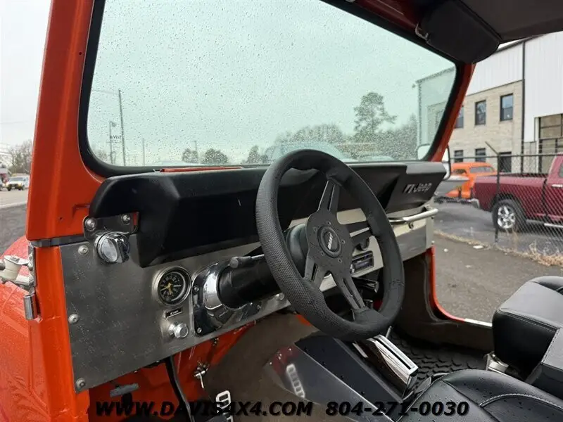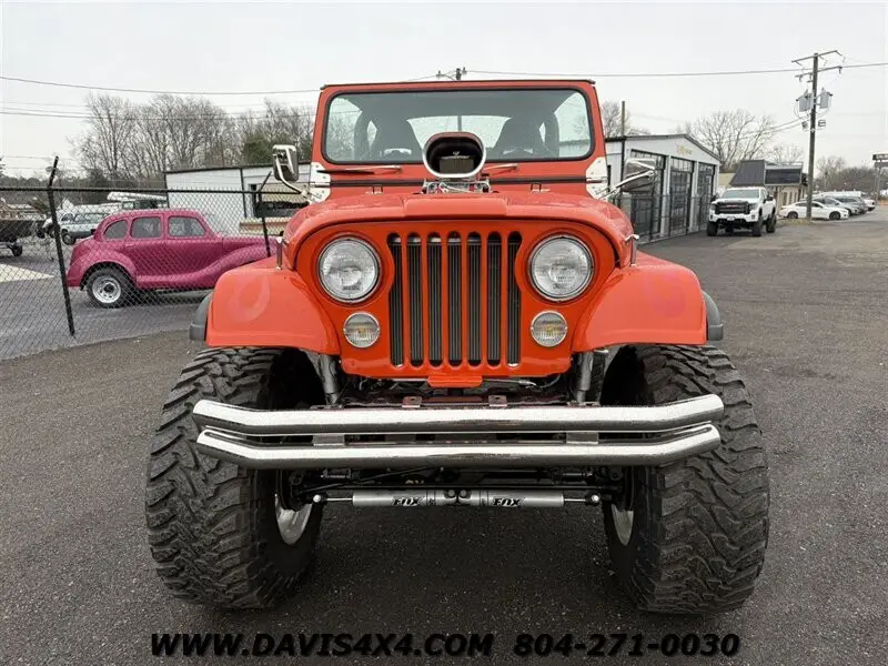 This 1986 Jeep CJ-7 Blower-Powered Monster is a fully customized, no-expense-spared show vehicle that represents a true bucket-list build for its previous owner, with well over $100,000 invested. At the heart of the Jeep is a BDS supercharger setup with polished dual four-barrel carburetors, custom headers, and a full custom exhaust system, all wrapped in a striking Hugger Orange finish with pearl-ghosted flame graphics. The build continues with Corbeau custom seating, a completely new fuel system from the tank to the engine with braided lines, custom doors, FOX shocks with remote reservoirs at all four corners on custom mounts, and a one-off ladder bar/traction bar system to manage the power. It rides on high-polish American Force wheels wrapped in new 40-inch Toyo tires, giving it an unmistakable stance and presence. While photos barely capture the impact of this Jeep, it is a turnkey showpiece that is fully operational and drivable; however, due to its short wheelbase and extreme power and acceleration, it demands respect behind the wheel.
