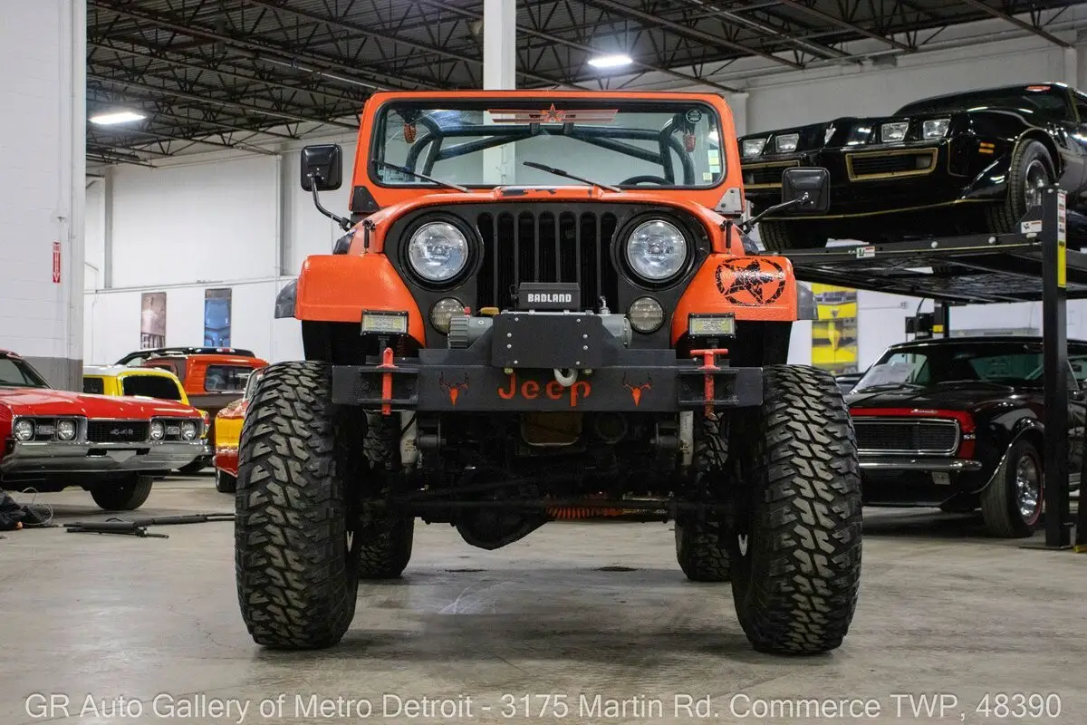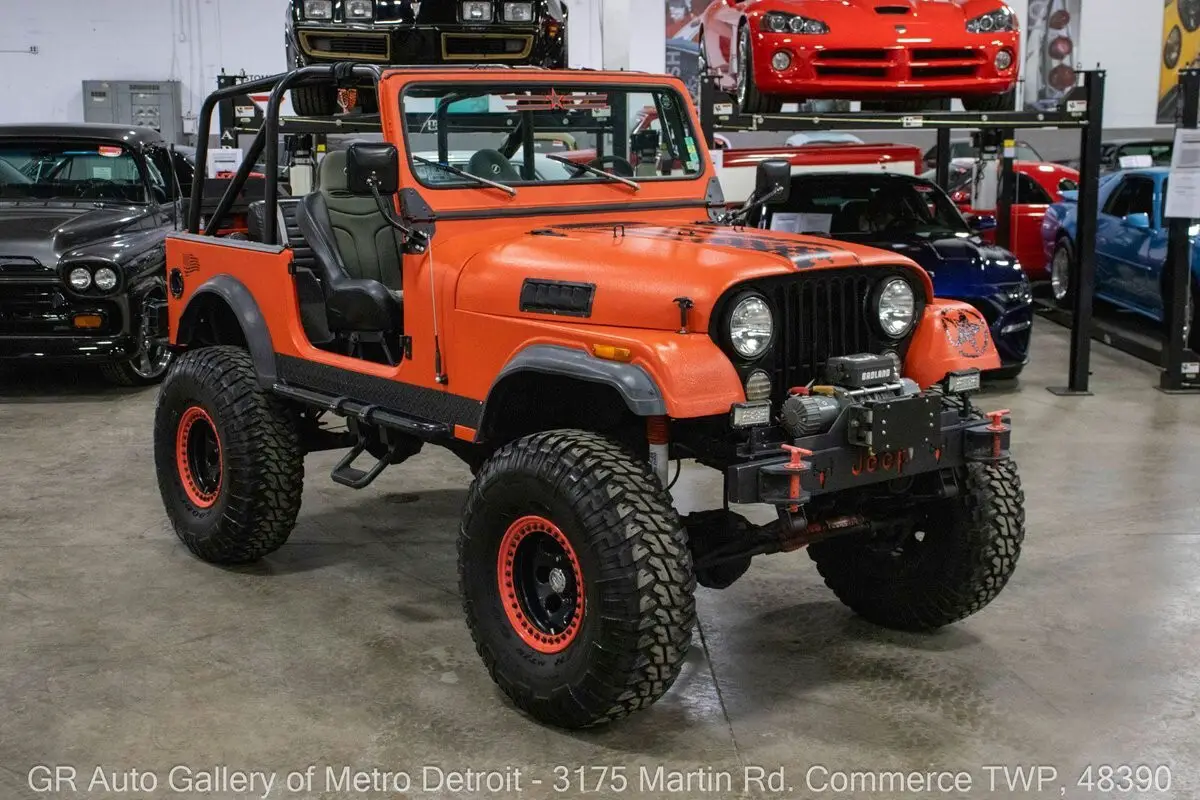 GR Auto Gallery is pleased to present this highly & tastefully modified 1980 Jeep CJ-7 for your consideration. Finished in a striking Orange exterior over a Black interior, this CJ-7 is powered by a strong 304 cubic inch V8 paired with a TH400 automatic transmission. This Jeep has been extensively upgraded and is ready for both trail duty and cruising. Highlights include a B&M shifter, new gearbox, new shocks, new shackles, and new bushings. It is equipped with a FiTech EFI system, onboard air, and a 9,000lb Badland winch for serious off-road capability. The drivetrain features a Dana 44 front axle, 4:10:1 Tru-Trac locker, and rear Dutchman axles. It sits on beadlock wheels wrapped in Goodyear Wrangler tires and also includes a spare tire with mounting bracket. Additional features include Corbeau front bucket seats, a BOSS Audio System Bluetooth stereo, interior headlights, new front fog lights and headlights, new switches, new side mirrors, windshield washer kit with functioning squirters, horn installed, new battery, all new electrical throughout, new soft top, two side steps, a new car cover, and much more. Drive this one out of our showroom or have us assist with shipping it to you anywhere in the United States! Don't hesitate to call us with any questions or for more information.