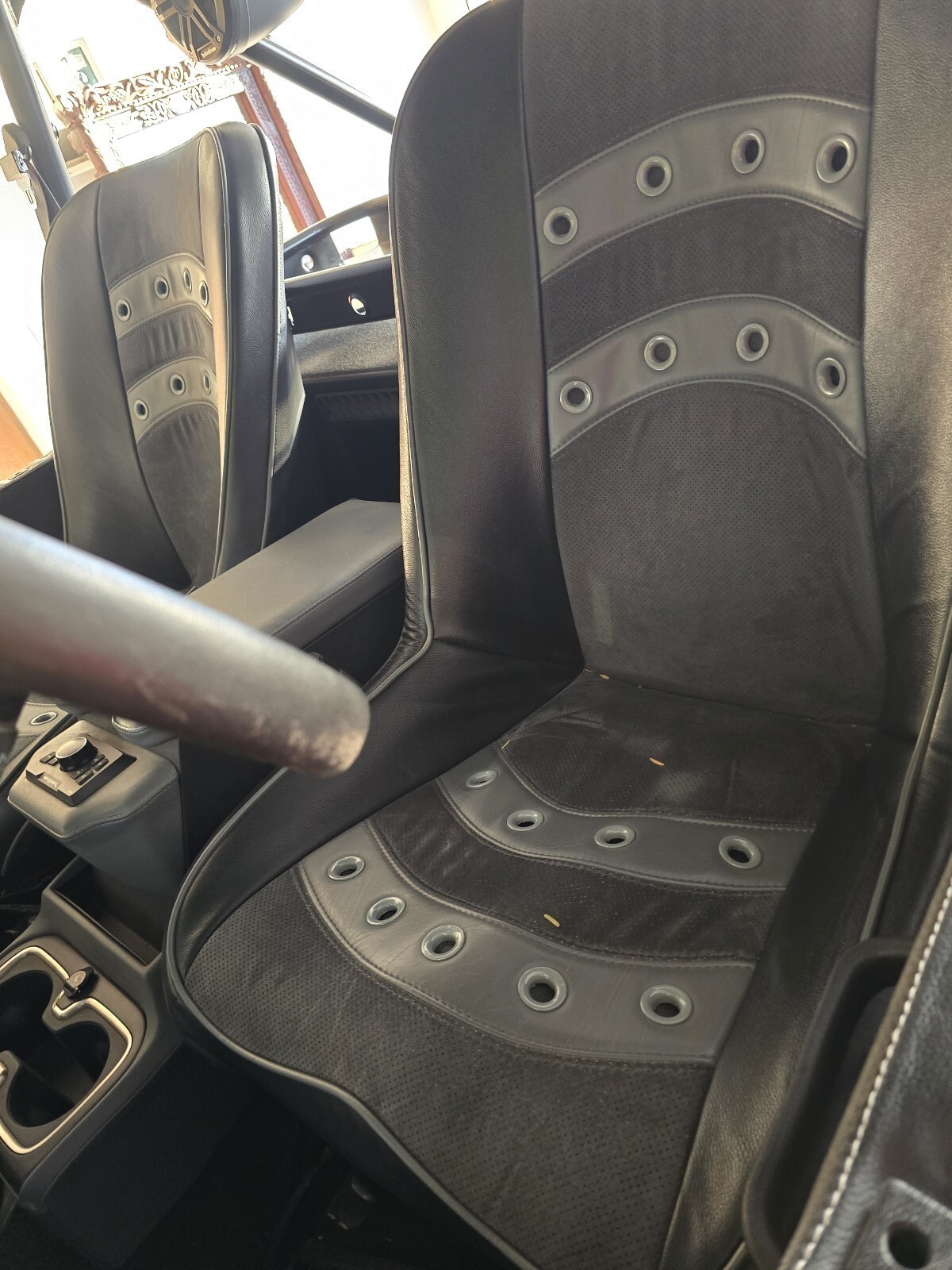 Inside, it's just as impressive. A full Rockford Fosgate stereo system with ove 2000 watts (complete with Rockford head unit) delivers sound that will literally shake the ground—this thing thumps. Heated seats and custom-upholstered seats and center console offer comfort that most CJ7s can’t dream of. Autometer gauges give you precision readouts, and KC LED lights light the way when the sun dips below the horizon.