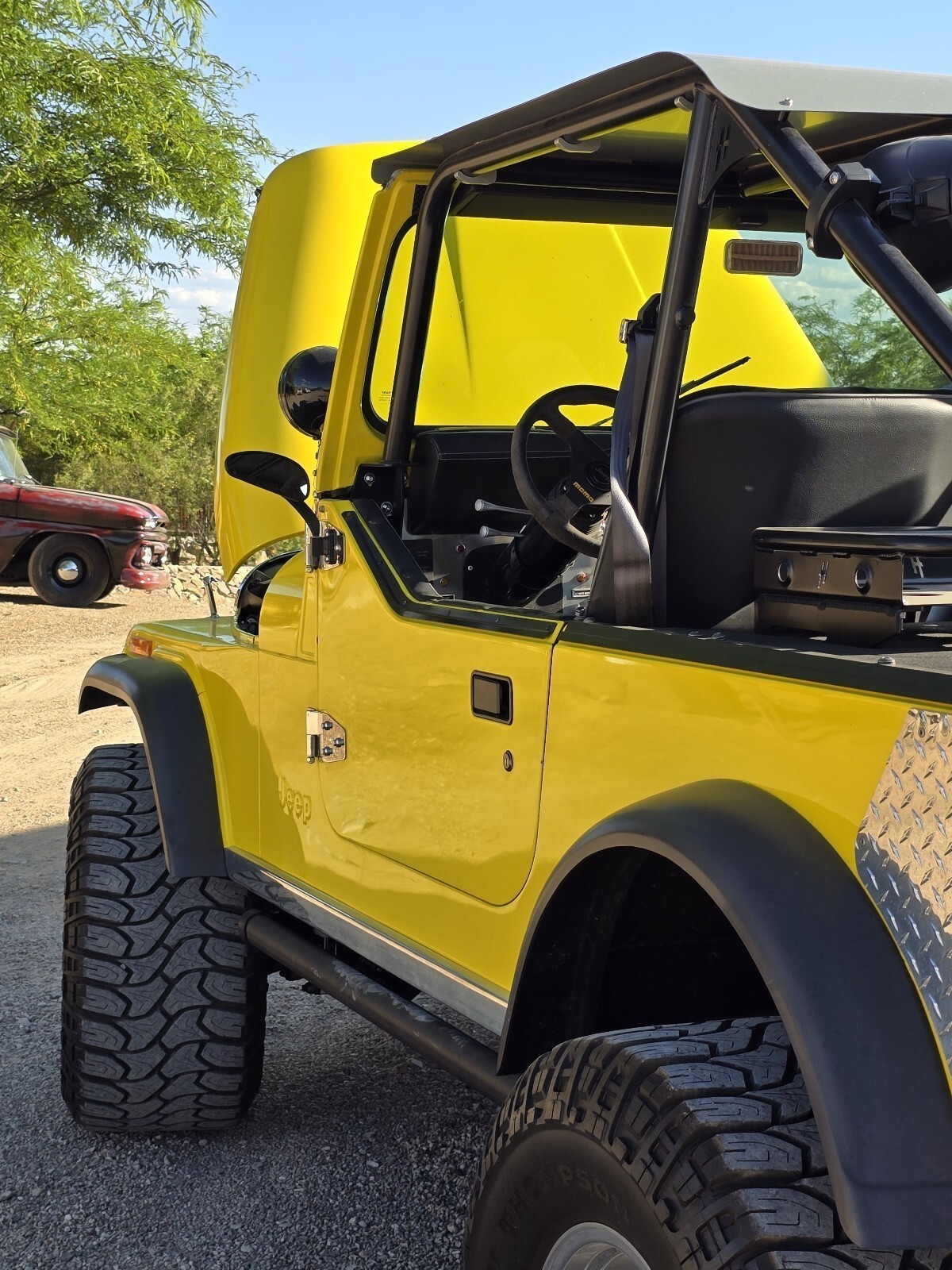 Riding high on a 4-inch lift kit and aggressive Mickey Thompson tires, this Jeep is trail-ready and built to handle the rough stuff. Currie front and rear differentials, crossover and high-steer setup, and working 4WD with 4-wheel disc brakes make it a serious off-roader. A Warren front winch ensures you’ll always make it home, no matter how gnarly the trail gets.
