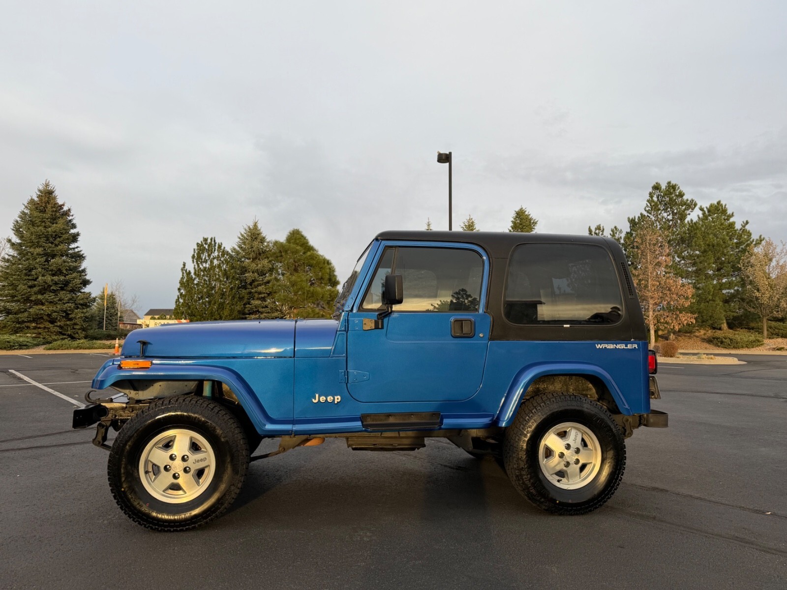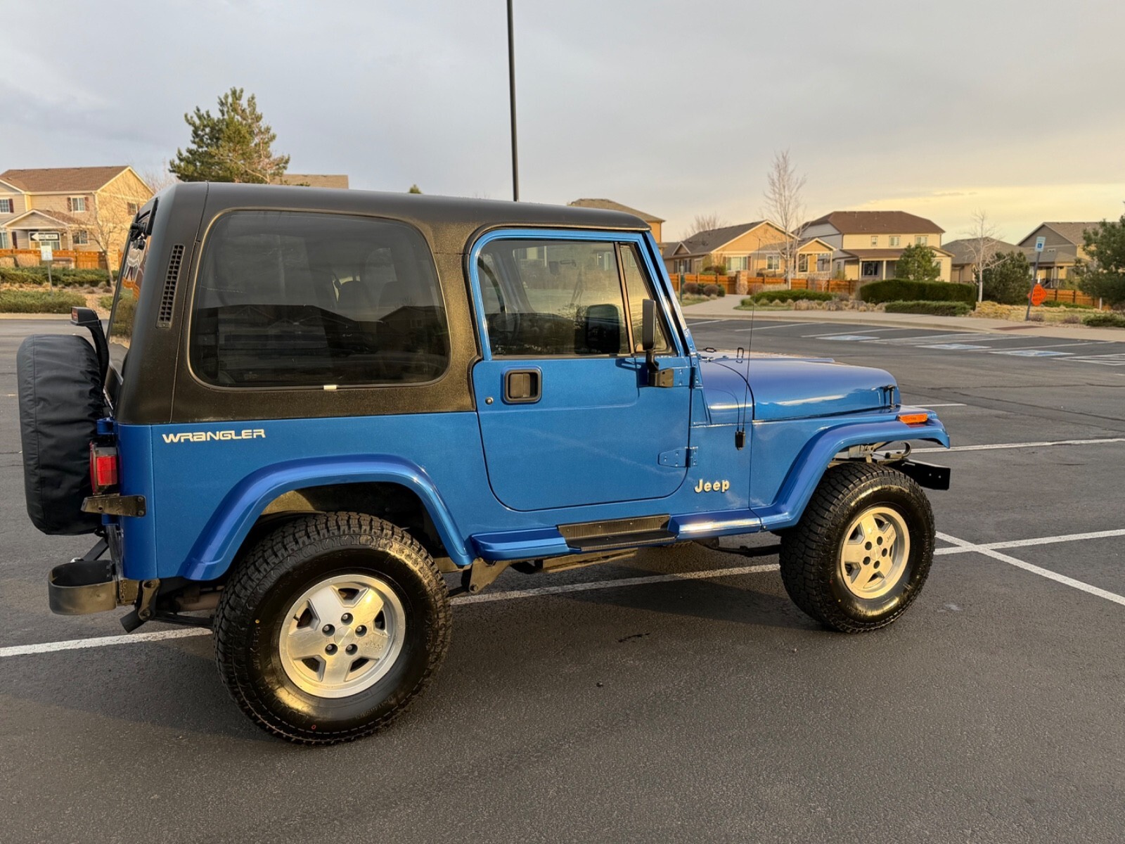 Selling my 1994 Jeep Wrangler SE with the 4.0 engine and 5 speed transmission! I bought this Jeep from anelderly couple in central Colorado who kept it on there ranch. The Jeep has a perfect auto-check and car-fax reports. This Jeep is in amazing condition! The paint is like new and the interior is about perfect! The jeep has low miles only at 125k. Everything works on the jeep. All lights work inside and outside. All gauges work and horn blows. Heat blows hot and the 4wd works with the 4wd light coming on. Horn blows and wipers work. The jeep has had a bunch of maintenance perform and I have some paperwork that will be including with the sale. The tires are brand new and I also had anoil change afuel injection service perform. This Jeep needs nothing and is ready for summer! The jeep is located in aurora Colorado and could be driven home or I can suggest a shipper that I have use for over 20 years. The radio works also. Clean title in my name. I will only accept cash or bank wire and will not go through eBay for payment. The floor mats and tire cover will stay with for my personal collection. If you have any questions or like more pictures please ask. This is a rot/cancer free jeep. Mileage is 125,922 on the jeep. The jeep does have a mild 2 inch lift kit also!