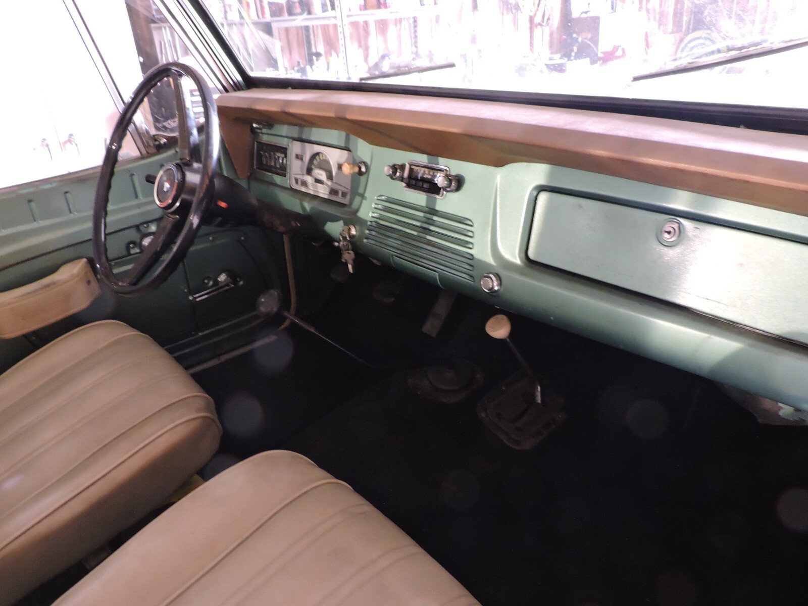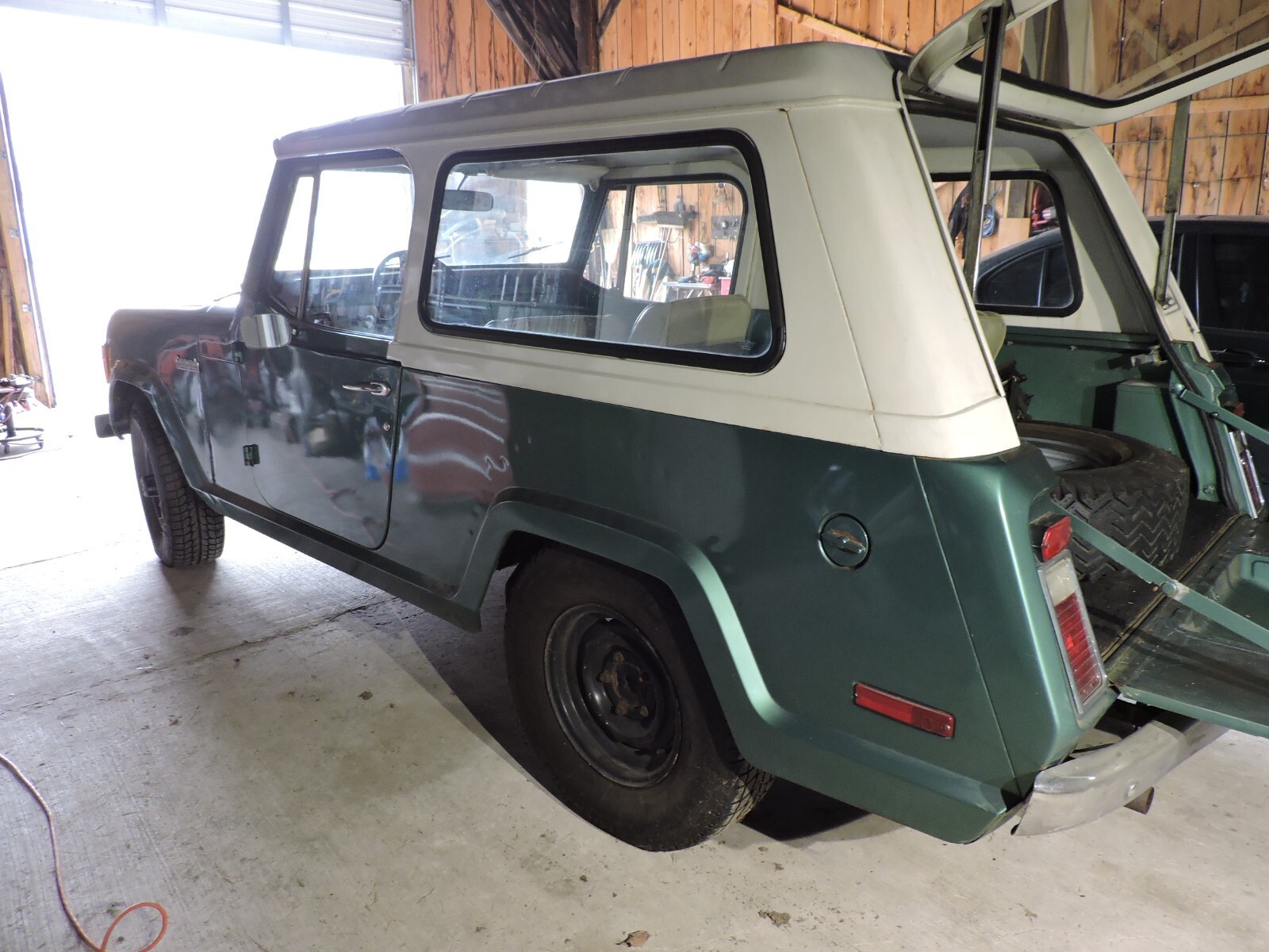 Vehicle was fully repainted 40 Years Ago with its Original Color and Type. It is starting to show some Paint Bubbling in a few spots. It is equipped with the 232 Cu.In. Straight Six Cyl. Engine with its 3 Spd. Manual Transmission, Clutch and Transfer Case function as Intended.The same is true for the Front & Rear Differentials and the Factory Warner Hubs. The Hard Top is in exellent Condition except for the Orginal Head Liner that is starting to sag from age. The Dashboard and Instrument Panel is Original as well as the Radio & Antenna, Fuel Tank Cap and Horn Button showing the AMC Logo.