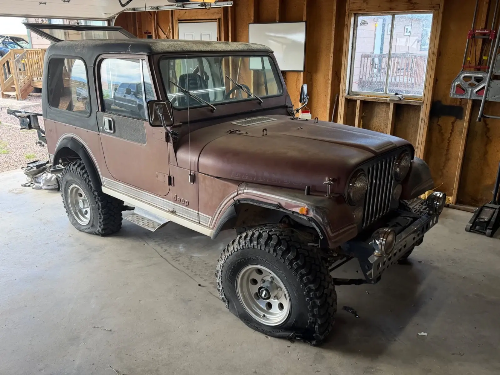 1981 CJ7 Laredo full option original survivorParked since 200388k original milesEverything works including ACFactory v8, automatic, tilt, ACRuns great!Gas tank leaksI have the original wheelsIt’s currently on rollers so it can drive onto transport7I9/6I9/7523