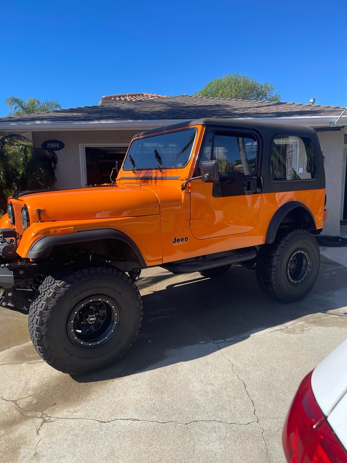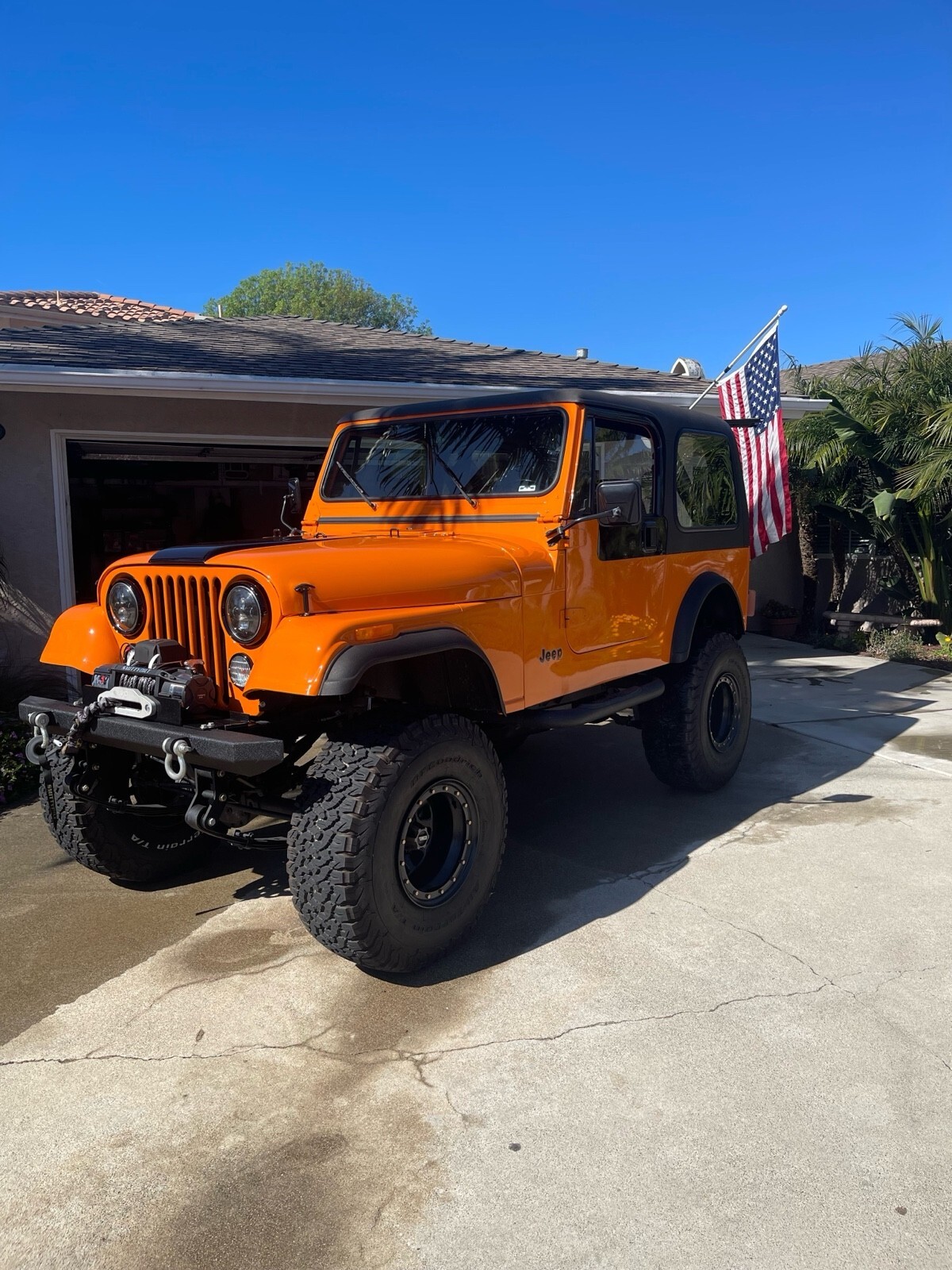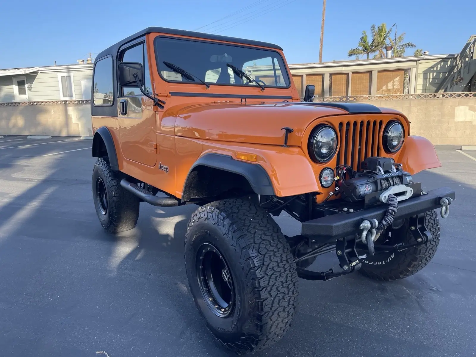 This 1979 Jeep CJ-7 is a restomod that has been updated with modern exterior and drivetrain components. The owner has had it for one year and uses it as a daily driver. The vehicle is in great running condition and has a clean title. With around 5000 miles on the odometer, this orange Jeep is a reliable and stylish option for those looking for a vintage vehicle with modern updates.