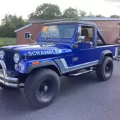 What's that you say? You need the go-anywhere utility of a Jeep CJ7 but would like a little bit of carrying capacity to go with it? Well then step right up, ecause this awesome 1984 Jeep CJ8 Scrambler delivers in a big way.We have receipts adding up to about $4000 just in the last year, aking this is one of the better Scramblers we've seen in a long time. The handsome copper paint is very much in fashion today, nlike all the brown and orange versions you saw running around back when they were new, nd it fits the Scrambler just fine. Fender flares help cover the fat off-road tires and look great on the classic body, nd a custom hardtop and steel doors add some practicality to a machine otherwise intended for pure fun (a bikini soft top is also included). Note the addition of a chrome grille, ubular step bars, aillight guards, nd heavy duty front and rear bumpers with tow hooks that make this Jeep look ready to tackle just about anything.The interior is basic, s you'd expect, ble to keep you firmly in place during serious off-road adventures, ut made of durable materials that can be hosed off and ready to go in a matter of minutes. The bucket seats are new additions that look perfect in the vintage Jeep, nd it appears that the floors have been finished with spray-on bedliner material, o they're just about bulletproof. Those steel doors feature padded door panels and vent windows that offer some civility that the original canvas doors may have lacked. The original gauges are still in place in the flat, imple dashboard, ugmented by the usual auxiliary gauges to better watch the engine's vitals, nd there's a recent Pioneer AM/FM/CD stereo head unit in the center. You'll also find an under-dash A/C unit that's fully functional, o it'll help keep you cool on the trails, op or no top. A fat wood-rimmed wheel is easy to grip and looks a lot better than the original, nd the shifter now manages five forward gears instead of four, ut we'll get to that in a moment.Power is never an issue for this Scrambler, hanks to the professionally-installed 350 cubic inch Chevy V8 under the hood. Looking like it was born there, he brawny V8 delivers neck-snapping acceleration as well as the ability to climb just about anything on the trail when combined with the Jeep's 2-speed transfer case and 4-wheel drive system. An Edelbrock intake, -barrel carburetor, nd a fresh dual exhaust system help build horsepower without making it too radical to climb trails at walking speeds. The suspension has been lifted four inches with a lot of new suspension components, nd it's remarkably clean under there for such a capable off-roader. A 5-speed manual transmission gives you an overdrive gear, o highway cruising is relaxed, nd the two-speed transfer case and heavy-duty axles make it trail-ready. It's fitted with handsome aluminum wheels wearing 33x12.5x15 BFGoodrich All-Terrain radials.Sure, ou could try to find one nicer and then spend $40 grand to build it, r you could just give us a call and take this one home today. Call now!
