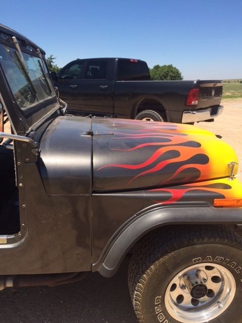Aluminum fuel cell.Motor was rebuilt when I got the jeep. Fiberglass hood,