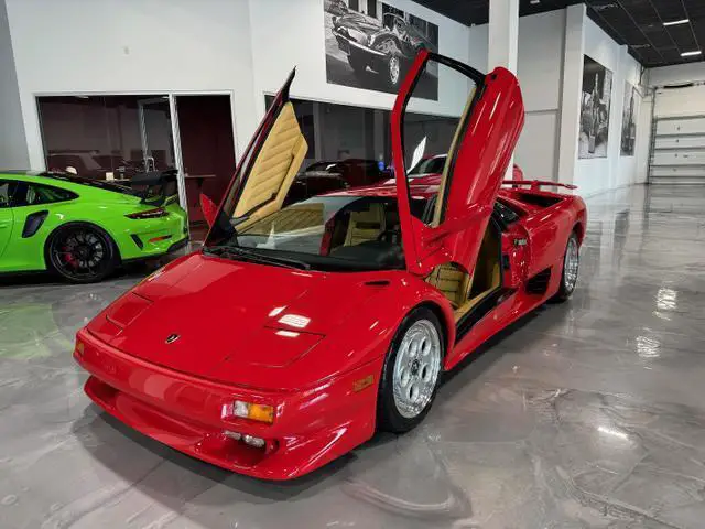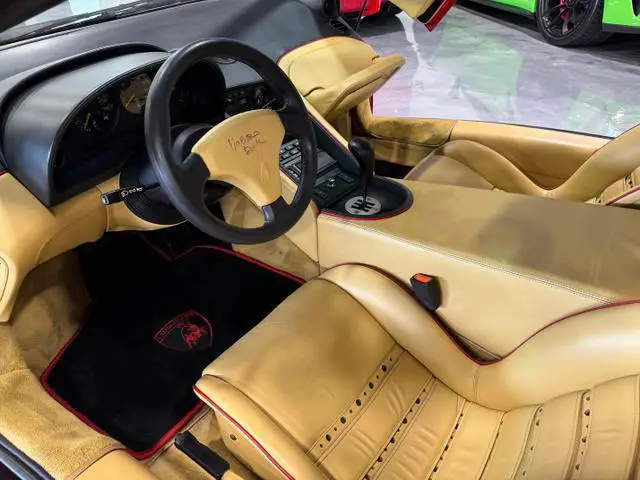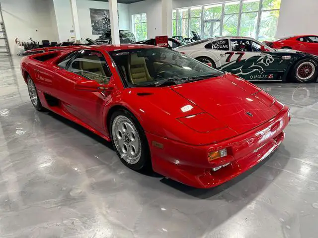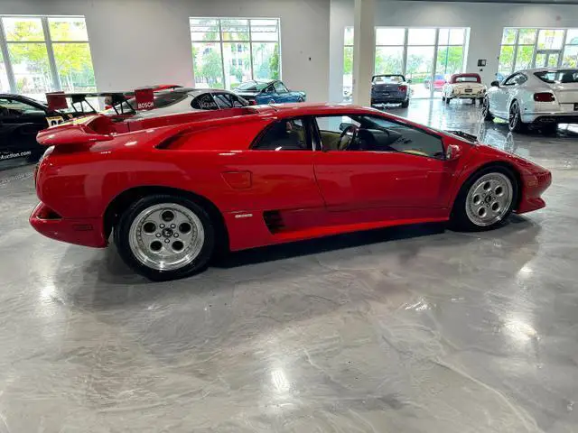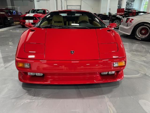 1994 Lamborghini Diablo VT with 13,000 miles.This 1994 Lamborghini Diablo VT was ordered in Rosso Diablo over a beige leather interior with red piping, and it is equipped with a unique ?bull horns? rear wing and a two-tone steering wheel with the signature of former Lamborghini chief test driver Valentino Balboni. Power is from a 5.7-liter V12 linked with a five-speed manual transmission, Viscous Traction all-wheel drive, and a pair of limited-slip differentials. Additional equipment includes adjustable suspension, power steering, 17? five-hole alloy wheels, retractable headlights, scissor doors, air conditioning, a Pioneer stereo, a gated shifter, and fixed-back bucket seats. The car spent its last 11 years in Ontario, Canada, with one registered owner, and work under their care included overhauling the fuel system, rebuilding the water pump, and replacing engine sensors, O-rings, the engine mounts, the tires, and various seals, hoses, and rubber components. This Diablo VT was featured in the June 2017 issue ofAutostradamagazine, shows 21k kilometers (~13k miles), and is now offered by the selling dealer with records, a clean Carfax reportFor more info call, email, or just stop in!877-894-4420
