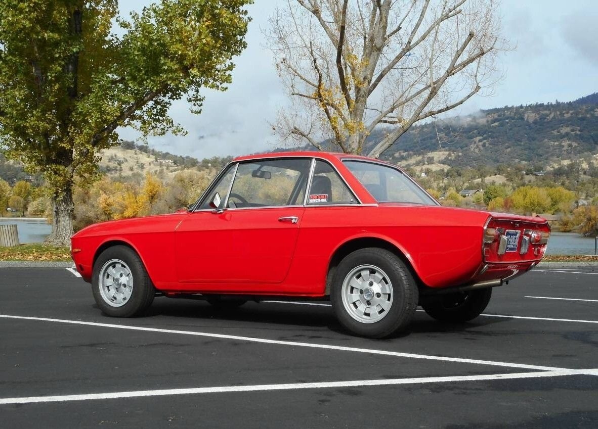 This Fulvia is an excellent solid, rust-free example with original bodywork, original paint, and the original engine. The lower rocker panels were repaired at some point in the past. The odometer shows 43,000 miles (noted as 70,000 KM). The only known variation from original form is the installation of Cromodora wheels and possibly leatherette seat panels in place of the original fabric. This vehicle has a clean, current Montana title and should be an easy transfer to California, as a smog check is not required.