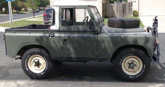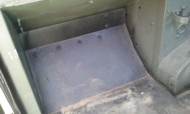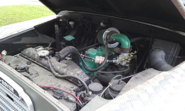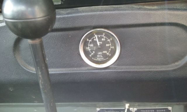 Apart from that, everything else is in decent shape for an old Rover. The odometer reads 14105, but unlike most of these auctions I'm not going to claim that's all that it has on it. It's safe to assume it's 114105 miles. The engine starts up easily, and has good oil pressure. (See the picture of the oil gauge, that's pressure @ idle) The four wheel drive works great, the locking hubs engage and disengage easily. There are the standard Series eccentricities, like a complicated to navigate gearbox, but nothing out of the ordinary that I've found. The previous owner installed some upgrades to the engine, including a new carb and upgraded ignition system, as well as painting it, but I don't believe it's ever been rebuilt. Basically, it's mechanically what you'd expect from an old Land Rover Series. There's at least four different colors of paint on it that I've found in various places. I've found tan, red, and forest green paint under the olive drab, although I don't know which one is the original. There is also an amateurish spray in bedliner that a previous owner installed at some point. The seats seem to be new. The underbody and outriggers are in decent shape with little more than surface rust that I've noticed. The bulkhead has seen repairs at some point, but is pretty solid. I think that about covers everything I can think of. If you have any questions or if you want pictures of anything, let me know.