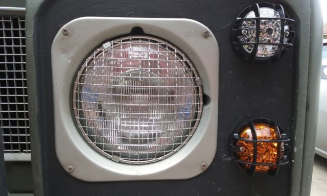 I also replaced the headlights, and replaced all the indicators with self contained LED setups, also from Rovers North. I installed individual brush guards on all the lights. I replaced the 6v bulbs with 12v ones in the Unity H1 fog lamps, as well as replaced a damaged bezel on one that I was lucky enough to find on eBay. I'm not sure how fog lamps from the 40s ended up on a Rover from the 70s, but I like the way they look so I've left them on. I replaced the door seals. I removed the beat up fender flares. I also added the towbar.