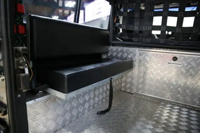 The interior is very nice. The front seats are in excellent condition (see pictures) and the rear compartment does have bench seats and full diamond plating as well.