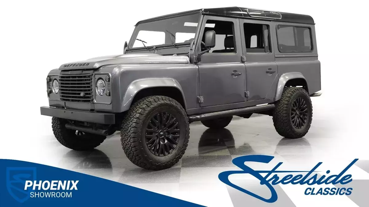 Vehicle Original VIN : SALLDHMV8LF8084834088-PHX 1994 LAND ROVER DEFENDER 110 Born in Britain and battle-tested in Turkey, this 1994 Land Rover Defender 110 carries the raw spirit of global exploration in its metallic gray finish. The rugged angles and high-mounted gloss black hardtop give this expedition-ready 4x4 an unmistakable silhouette that's equally at home scaling the Atlas Mountains or parked at a London café. LED headlights pierce through darkness on any continent, while the 18-inch Land Rover wheels wrapped in aggressive BFGoodrich K02 285/65R18 tires laugh at obstacles. Black side steps provide quick deployment for whatever adventure awaits. The fully customized black interior serves as your expedition control center. Every surface speaks of capability, from the geometric-stitched vinyl upholstery with octagonal patterns to the purposeful MOMO steering wheel and floor-mounted shifter. The front buckets, second-row bench, and rear jump seats keep your entire expedition team secured. A white twill dash center brightens the command station, while the double DIN stereo with Bluetooth capability, USB charging ports, and dual Pioneer speakers keep you connected whether you're crossing the Sahara or conquering the Arctic Circle. The Rover 3.9L V8 engine, fed by dual SU carburetors, supplies raw British muscle for any terrain. The five-speed manual transmission and transfer case combination delivers precise control from desert floors to mountain peaks. The authentic Defender suspension system – radius arms with coil springs up front, trailing arms with coil springs in back – absorbs punishment from six continents while maintaining composure. Four-wheel power disc brakes and power steering provide confident control, as the glasspack-style exhaust announces your arrival in any language. HIGHLIGHTS: • 3.9L V8 Engine • Dual SU Carburetors • 5-Speed Manual Transmission • Transfer Case • 4-Wheel Power Disc Brakes • Power Steering • Factory Defender Suspension • Glasspack-Style Exhaust System • Metallic Gray Paint • Gloss Black Hardtop • 18-inch Land Rover Wheels with 285/65R18 BFGoodrich K02 Tires • LED Headlights • Black Side Steps • Full-Size Spare Tire • Custom Black Interior with Geometric Stitching • Front Bucket Seats • Second Row Bench Seat • Rear Jump Seats • White Twill Dash Center • MOMO Steering Wheel • Floor-Mounted Shifter • Double DIN Stereo with Bluetooth • Dual Pioneer Speakers • USB Charging Ports • Black Headliner • Rubber Floor Mats • Maintenance Records This 1994 Land Rover Defender 110 thrives where roads end and exploration begins. With its 3.9L V8 power, globe-trotting pedigree, and expedition-ready upgrades, your next adventure awaits. Call today!