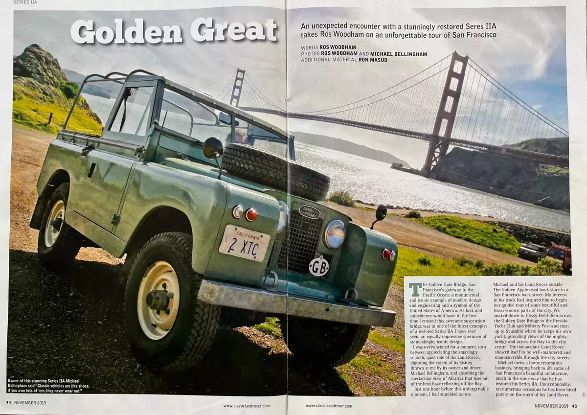 This beauty was the subject of a centerfold article for Classic Land Rover Magazine. It is being presented by Michael Bellingham. You can see three photographs of the article in the photo section. This was one of three articles produced about the vehicle in Classic Land Rover Magazine, over the years. It also won second place at the San Francisco/Presidio Concours D'Elegance.
