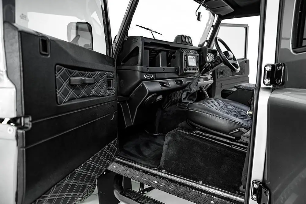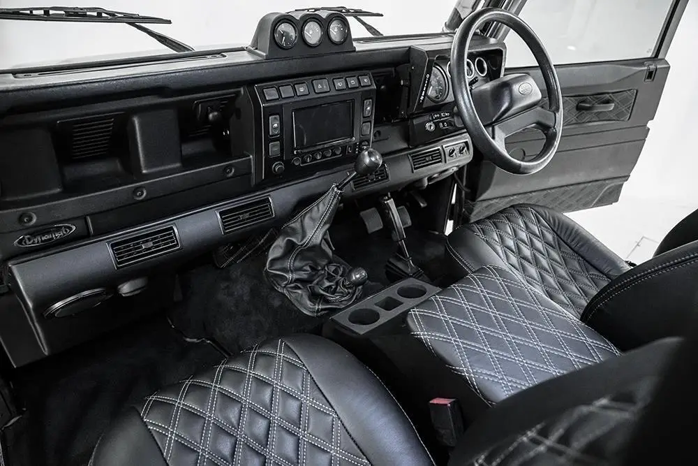 This beautiful Defender was finished off in its original factory Corris Gray followed by Full Custom Nappa Vally Genuine Leather Interior and Fully Functional Td5 Dashboard and Console. Project Spencer took about 2000+ Hours and over 2 years to build.