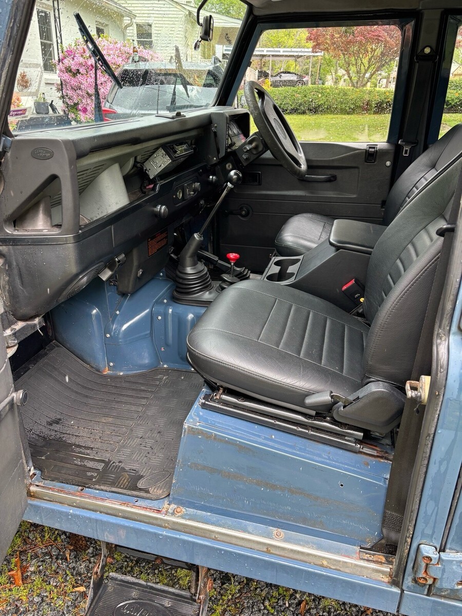 This 1993 Land Rover Defender is an original vehicle with some updates to the drivetrain. The owner has had it for 5 years and has enjoyed taking it on weekend drives. The vehicle runs great and has a clean title. It has a blue exterior and has been well-maintained. The mileage on the vehicle is 210023.