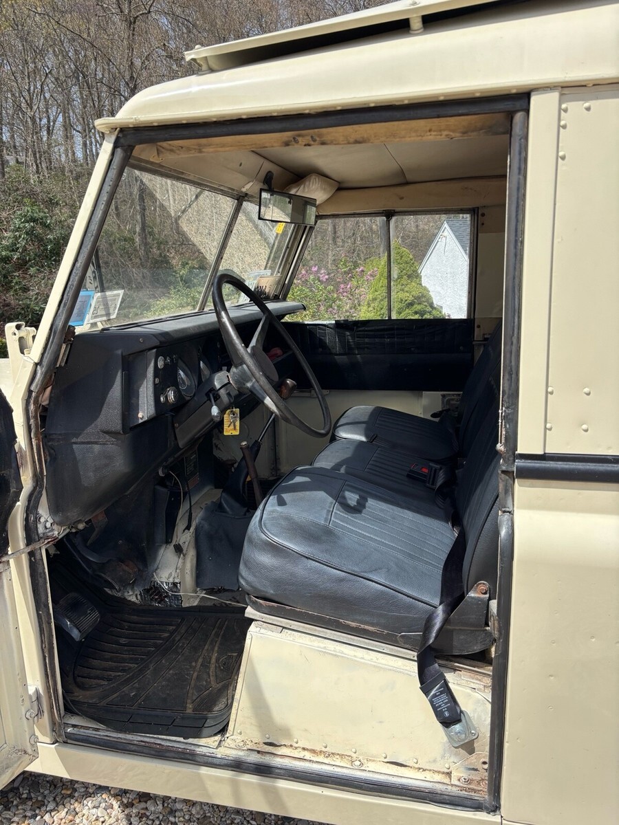 For sale is my 1975 Land Rover Series 3 Santana. Car has the Land Rover 2.25 diesel engine, a four speed manual and has overdrive. NYS title. Car spent many decades on a farm in southern Spain before being brought here two years ago. Odometer shows 77k but works intermittently. Work to car includes: Repaint in Bone White Reupholstered seats and jump seats Seatbelts installed New clutch New radiator and hoses New Tires All new braking system including hoses, master cylinder, pistons New front drive shaft New battery and belts Full tune up including new wires for glow plugs,timing and all fluids including coolant, brake differential, gearbox and swivels. Electrical work to fix horn lights and signals New mats and sound deadening. Spare with matching tire New Shocks Undercoating Needs: Glow plugs Steering adjustment It is a 50 year old car and needs minor things but is generally in good shape to be enjoyed immediately. Being sold “as is” 516.503.3594
