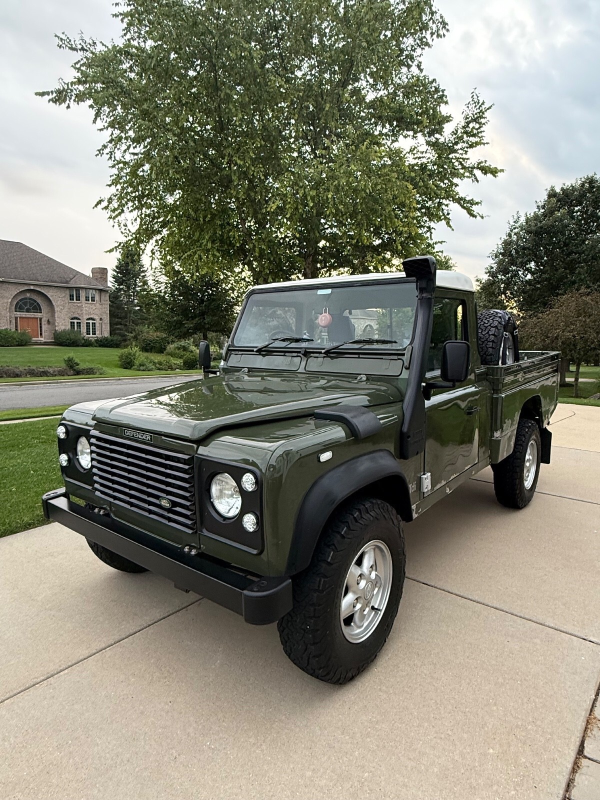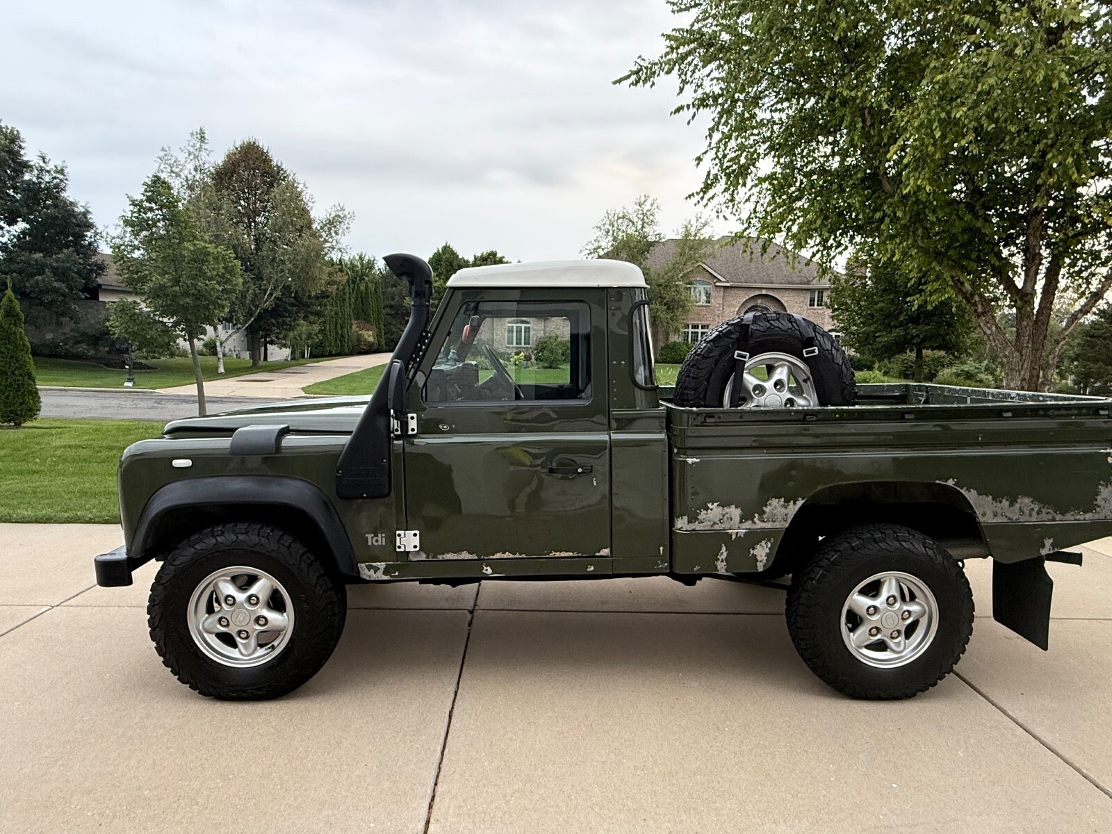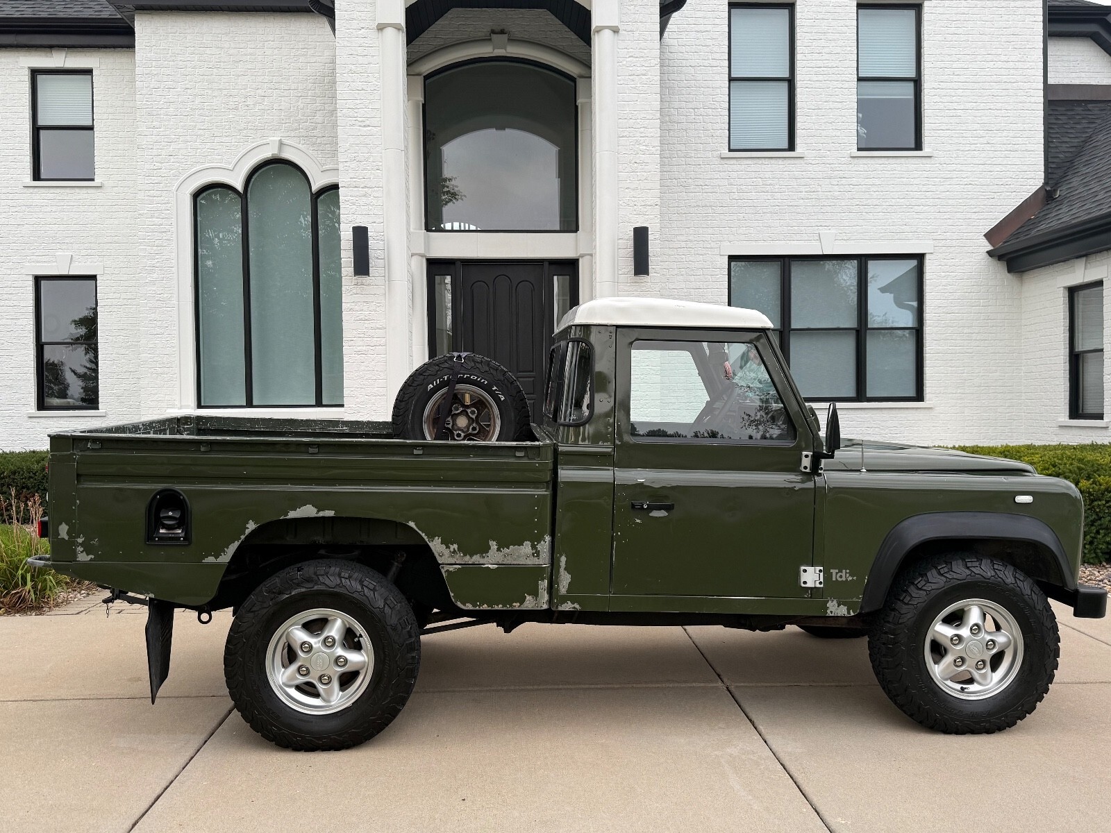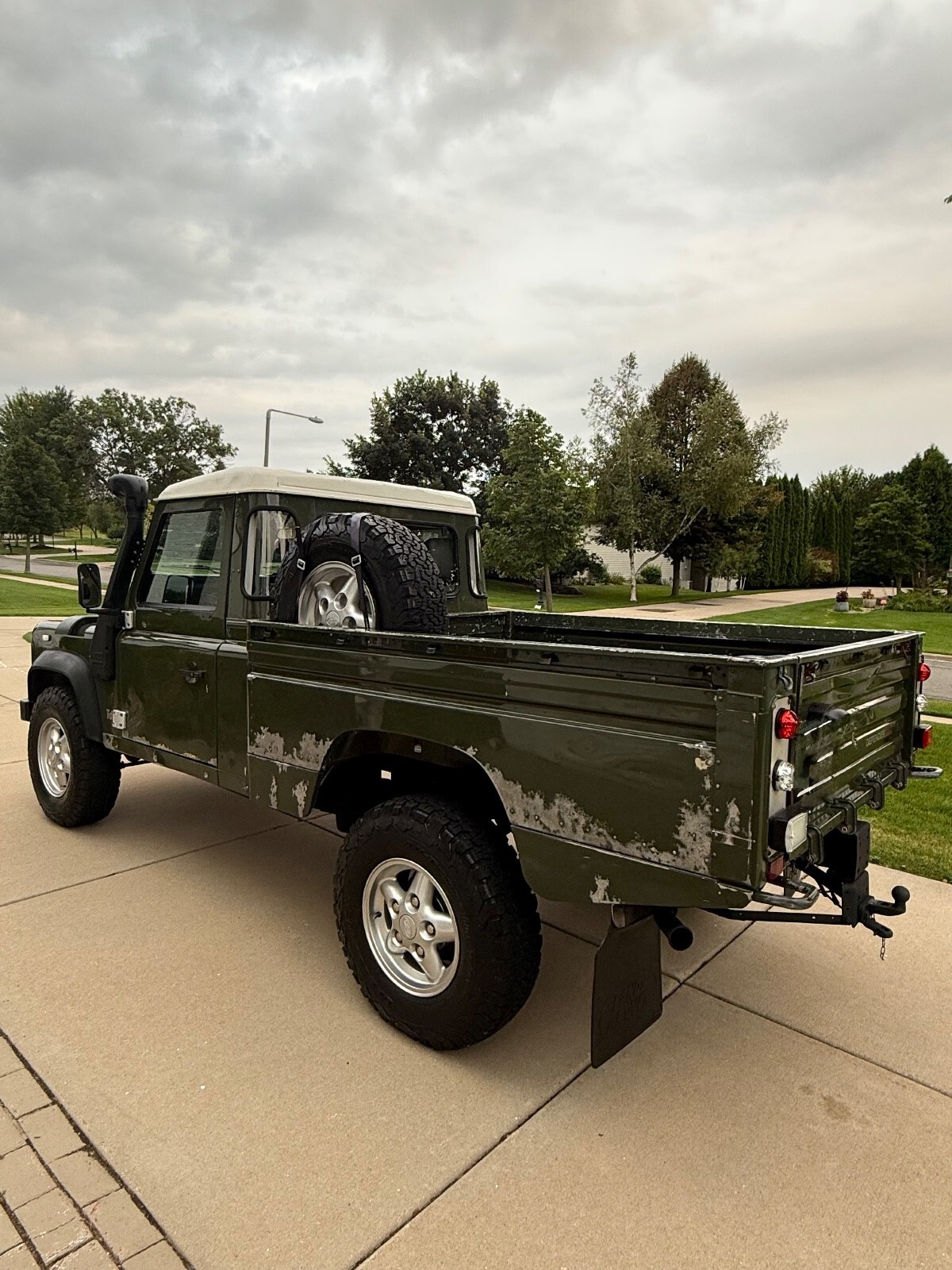 This1992 Land Rover Defender 110 High Capacity Pickup Truckwas purchased in Englandand brought to the U.S in 2021. The truck was subsequently was revised by my mechanical and the engine was replaced by a new (reconditioned engine - bought at Rovers North). Power is provided by a 200Tdi turbodiesel inline-four mated to a five-speed manual gearbox and a two-speed transfer case, while modifications include LEDC directional lights and new headlights, Goodrich tires, and original alloy wheels set. The timing belt, water pump, and clutch were replaced + fuel injection pump is new. This 110 is offered with main and spare keys, import documentation, and a clean WI title.